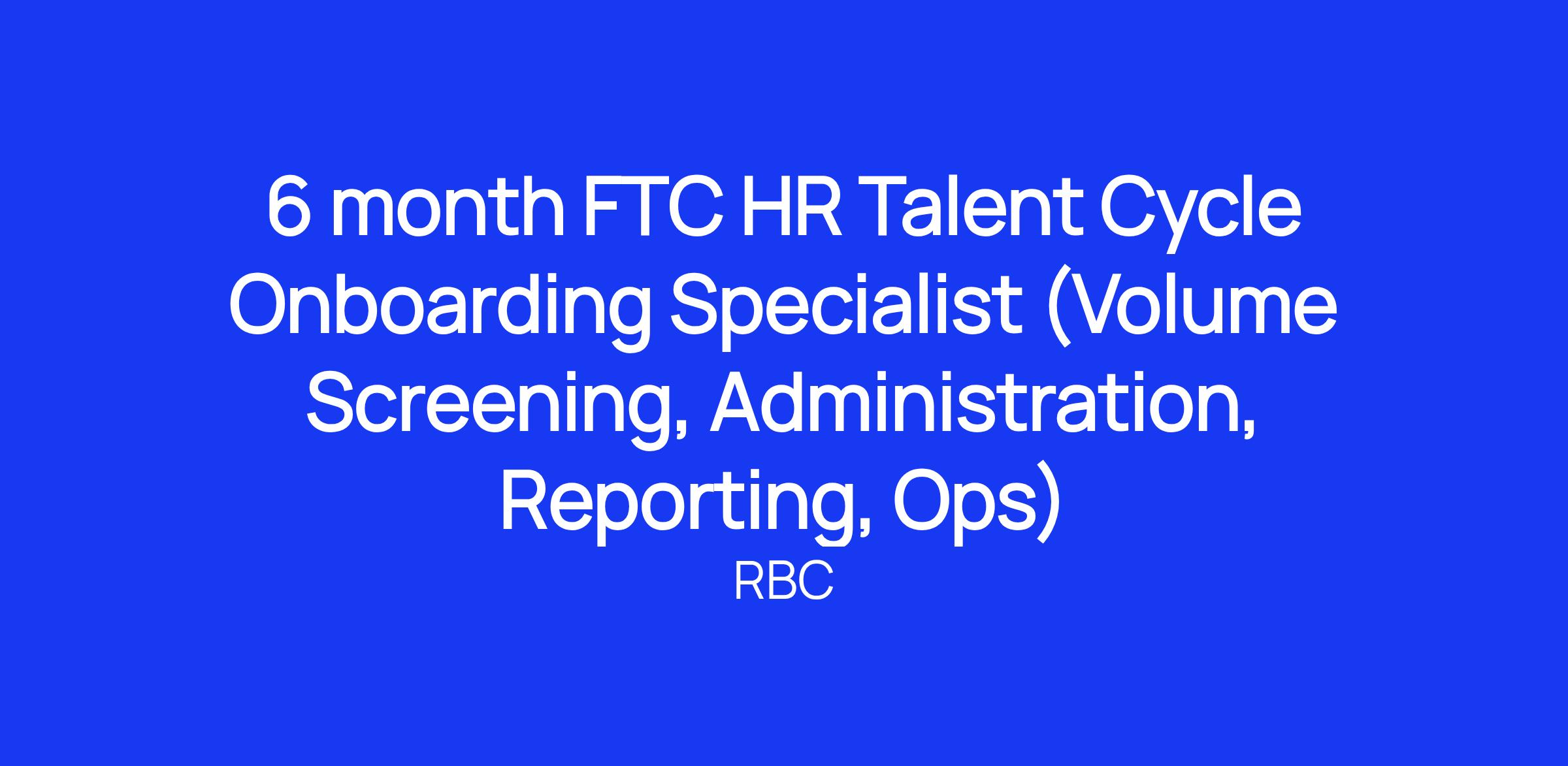 6 month FTC HR Talent Cycle Onboarding Specialist (Volume Screening, Administration, Reporting, Ops)