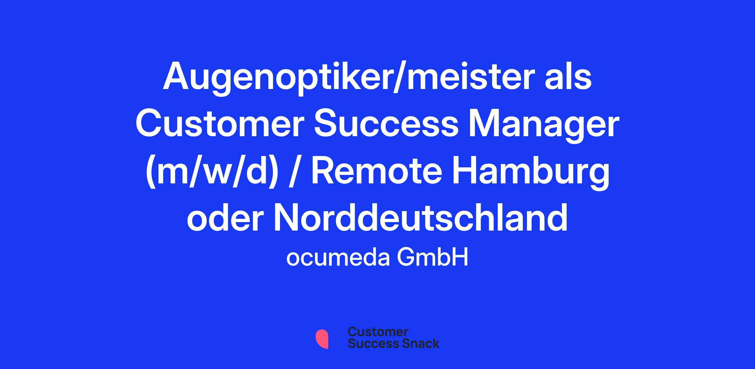 Augenoptiker/meister als Customer Success Manager (m/w/d) / Remote Hamburg oder Norddeutschland