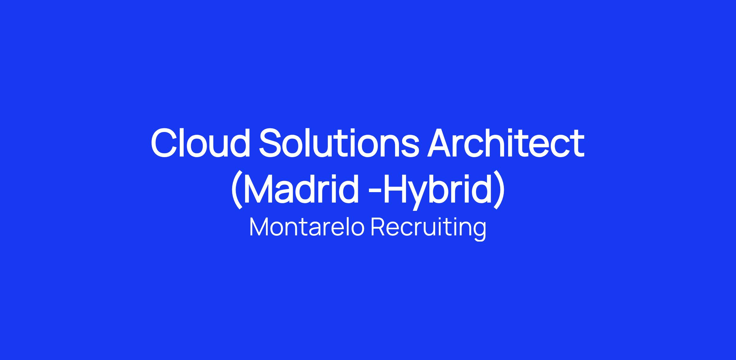 Description of the position Weβre looking for a Cloud Solutions Architect that for its global operations in Madrid. He/She will design and implement technical reference architectures, supporting and guiding the technical teams in charge of product definition and deployment.