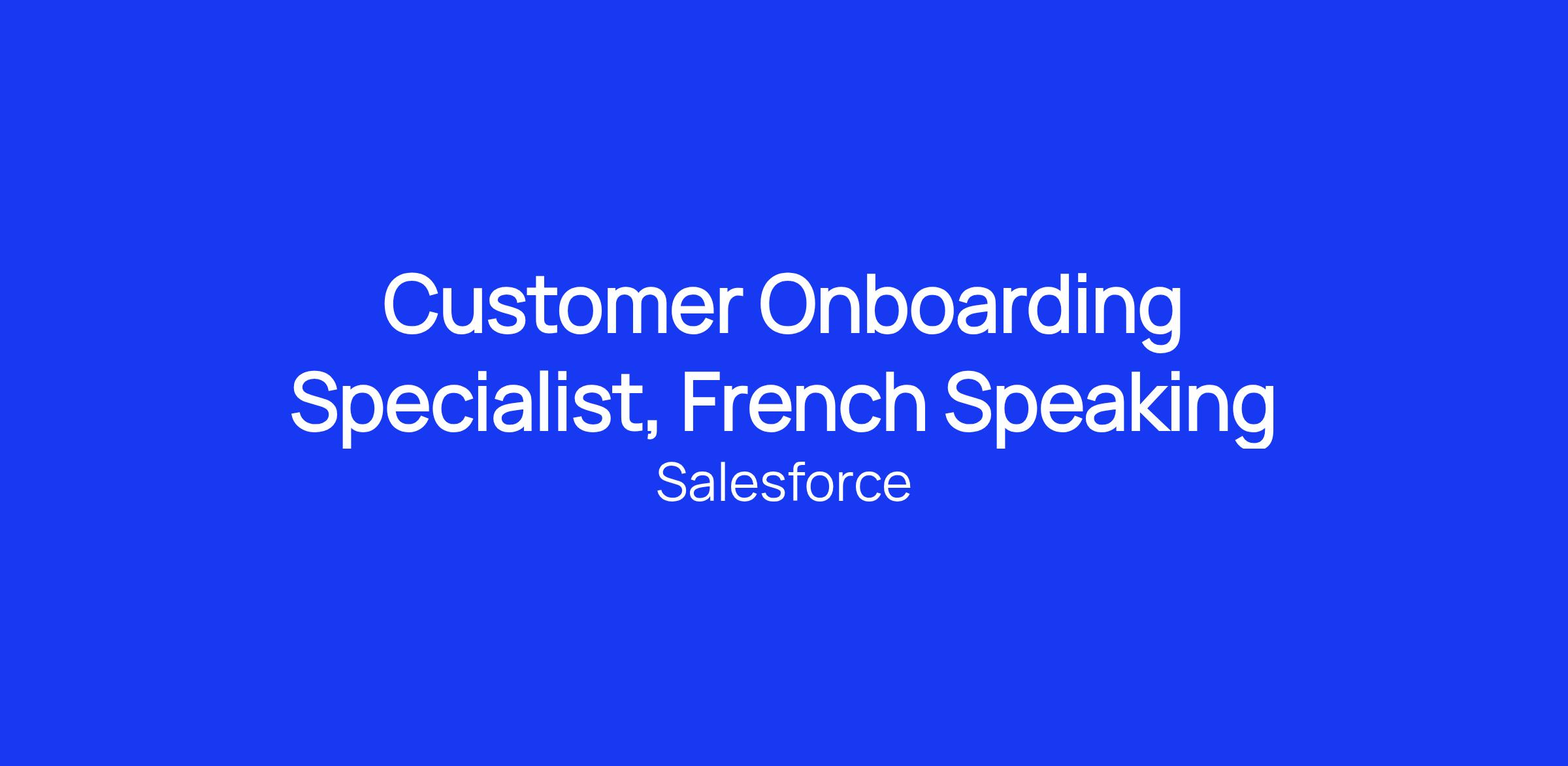 Onboarding Specialists warmly welcome our newest Salesforce Premier customers post sale before they begin the implementation process. We ensure a positive initial experience with Salesforce and the achievement of customer business objectives. This role focuses on helping customers achieve rapid "time to value" while helping them build a strong knowledge foundation for future growth with their chosen Salesforce clouds/products and the broader Salesforce Platform.