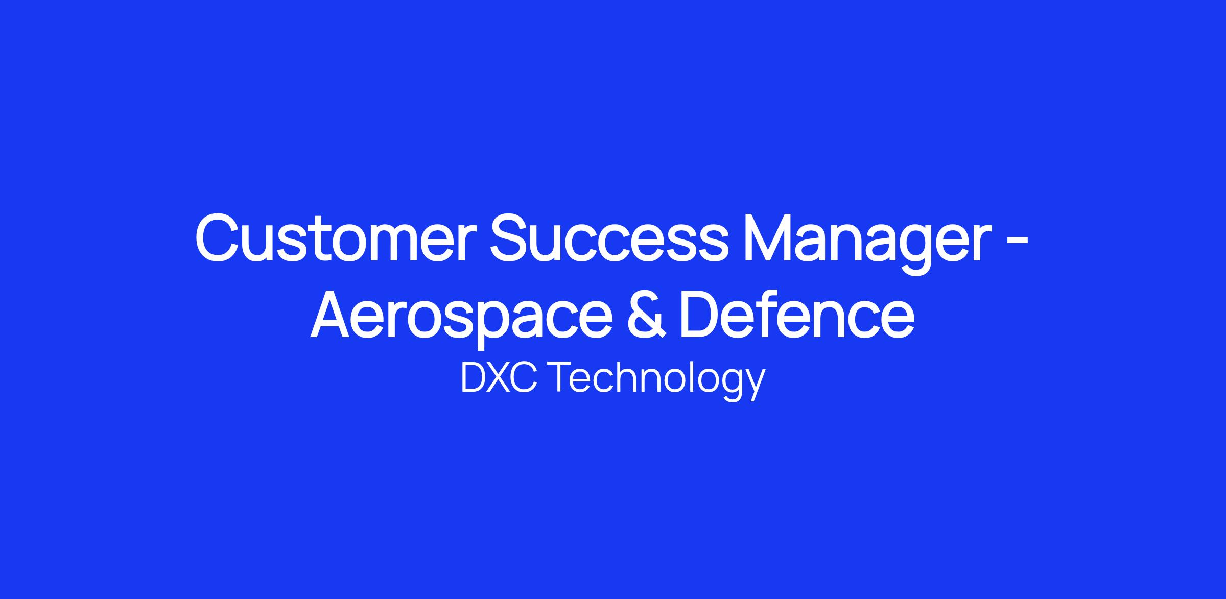As part of our overall investment and growth strategy in the UK at DXC we are looking to hire an experienced Aerospace & Defence Client Success Manager to join our CES team.