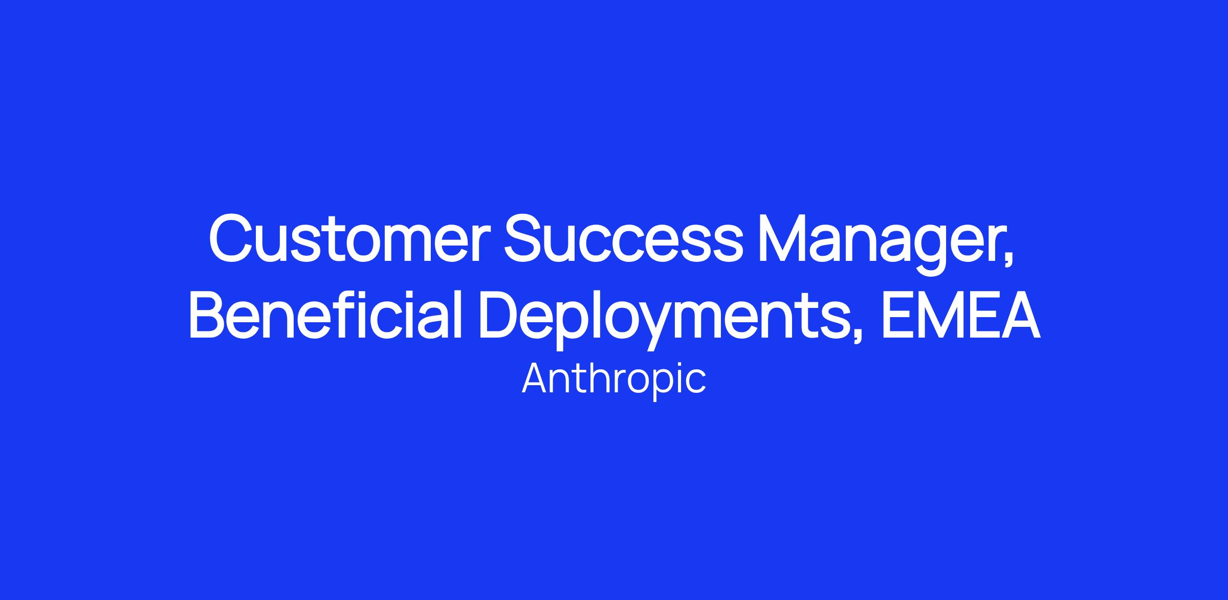 Join Anthropic’s Customer Success team as an EMEA Based Customer Success Manager supporting our Beneficial Deployments initiatives. In this role, you’ll apply enterprise-grade customer success practices to partnerships with mission-driven organizations. Anthropic’s Beneficial Deployments team is focused on building AI for good through partnerships with high-impact organizations across education, public health, life sciences, economic mobility, and more. As the dedicated Customer Success Manager, you’ll be the strategic partner and trusted advisor across EMEA - helping them harness Claude’s full potential of all our Claude capabilities - API, Claude for Enterprise, and Claude Code to amplify their social impact across program delivery, research, fundraising, and operations.