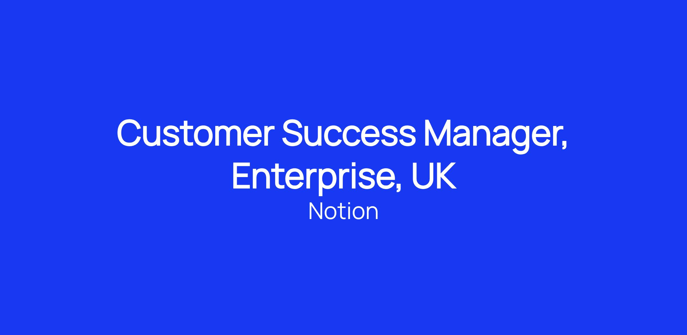 Help build the foundations of Customer Success at Notion: As an early member of our team, you'll be instrumental in helping define our motion.
