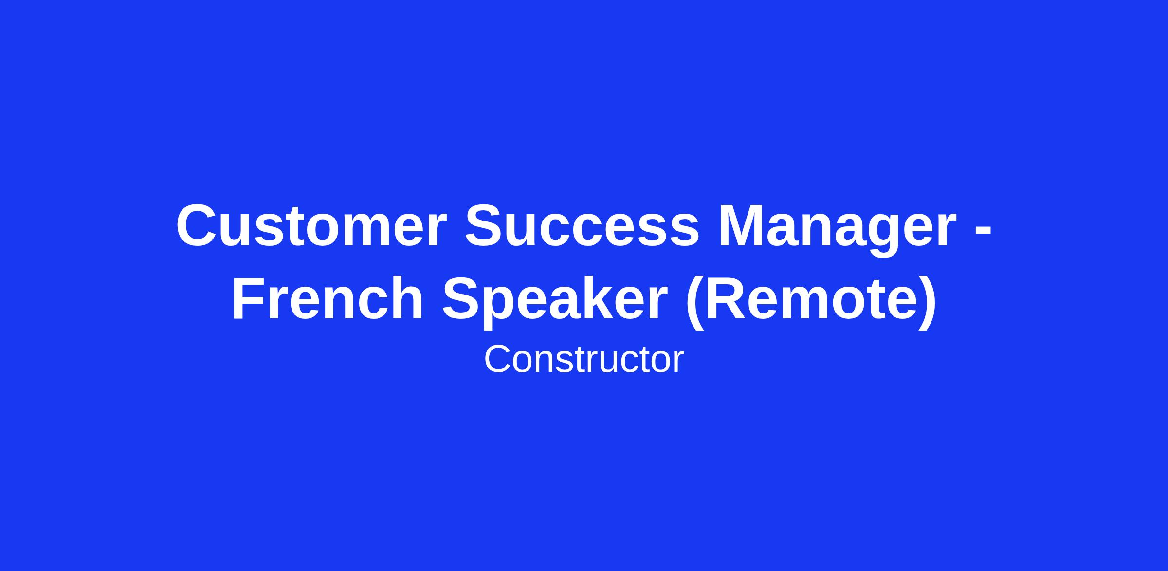 Customer Success Manager - French Speaker (Remote)