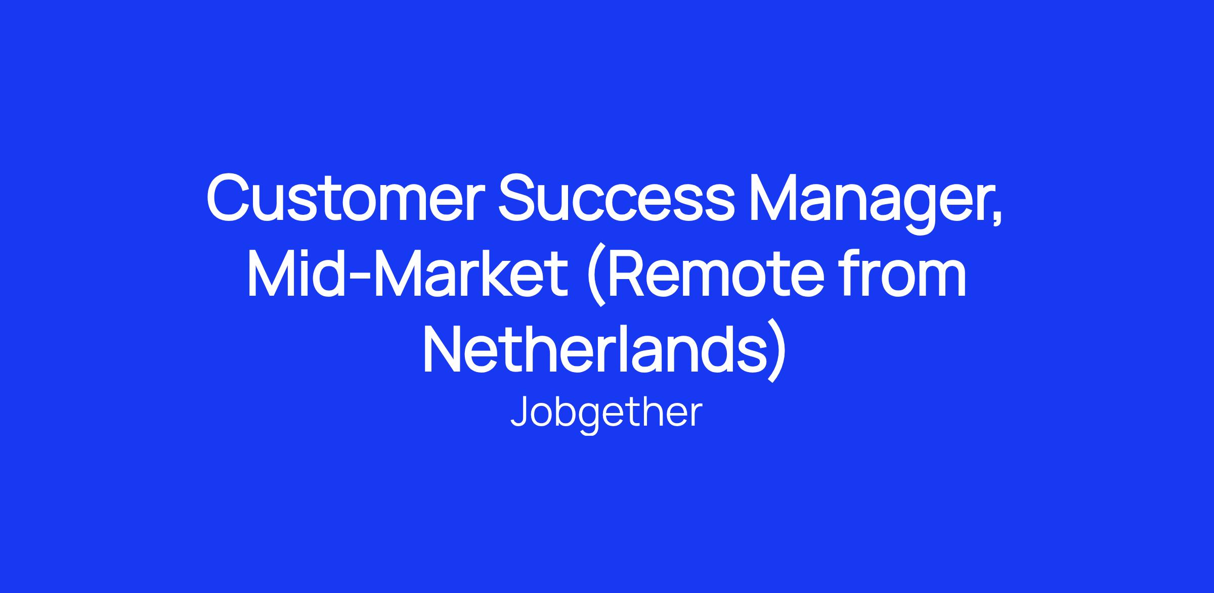 This position is posted by Jobgether on behalf of a partner company. We are currently looking for a Customer Success Manager, Mid-Market in Netherlands.