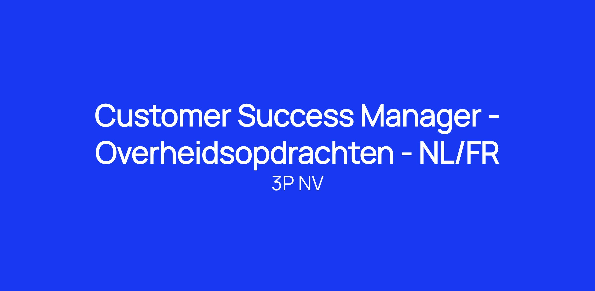 Als Customer Success Manager Overheidsopdrachten ben jij de strategische partner van je klanten. Je geeft consultancy en opleidingen aan organisaties en zorg je ervoor dat 3P perfect beantwoordt aan de noden van je klanten. Je beheert een eigen klantenportefeuille en bent hun vaste aanspreekpunt.