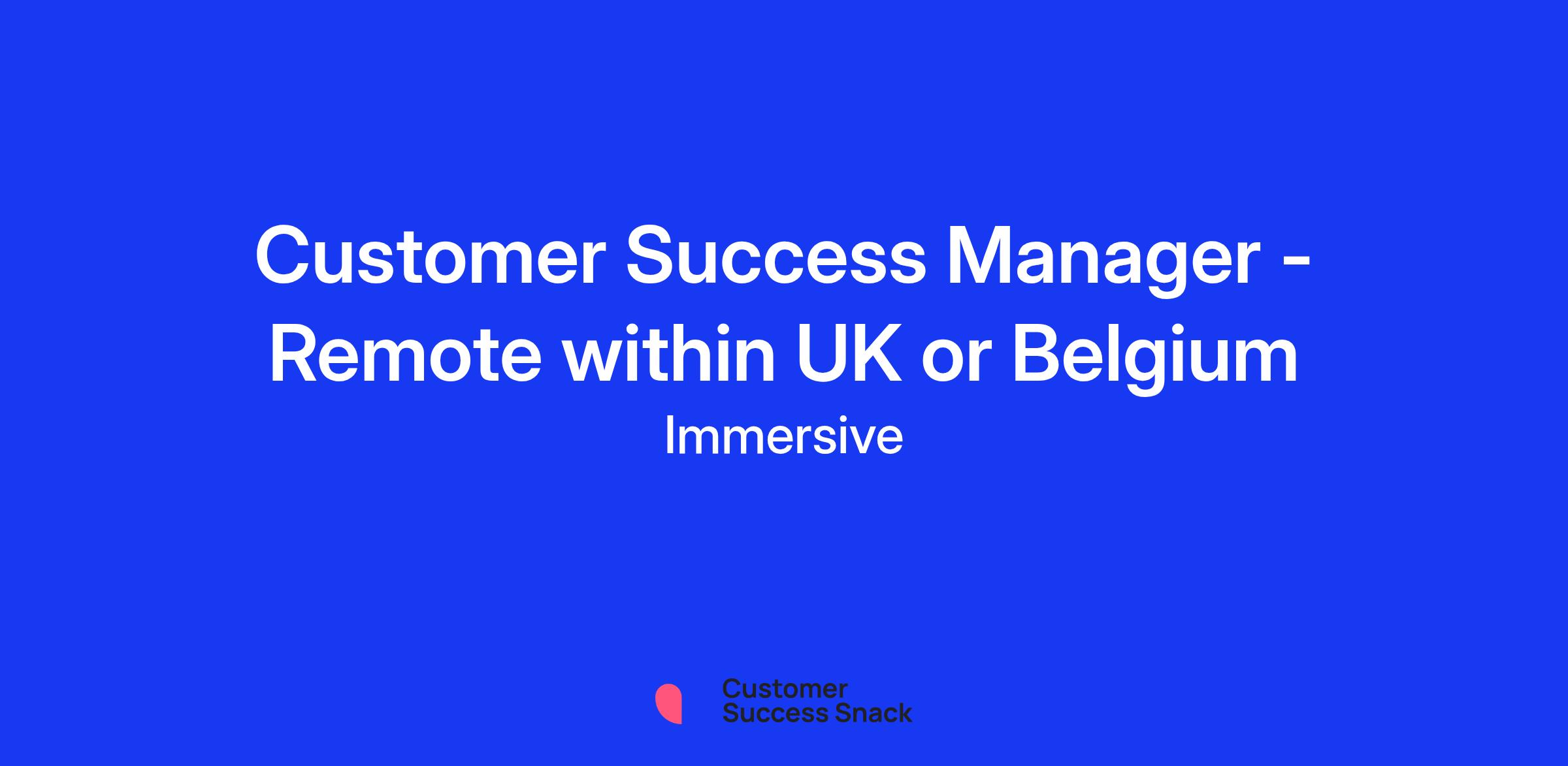 Customer Success Manager - Remote within UK or Belgium