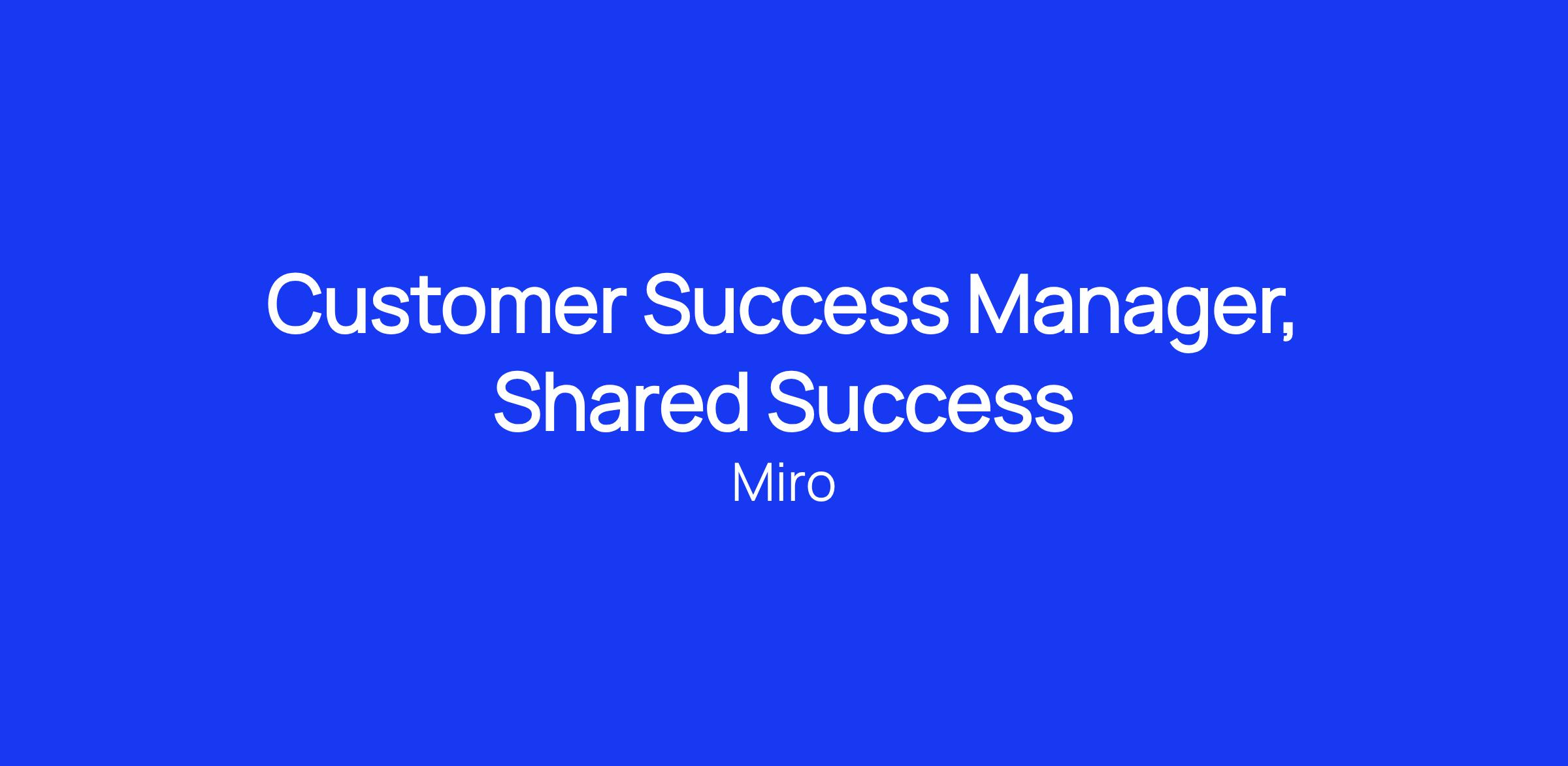 We are an AI-powered strategic growth engine, partnering with customers to realize the full impact of Miro as an AI-driven operating system for modern work. The team collaborates with customers to accelerate innovation, strengthen collaboration, and enable new ways of working. By leveraging product insights, lifecycle signals, and scalable engagement strategies, Shared Success CSMs drive measurable outcomes in retention, adoption, and expansion across a global and diverse customer base.
