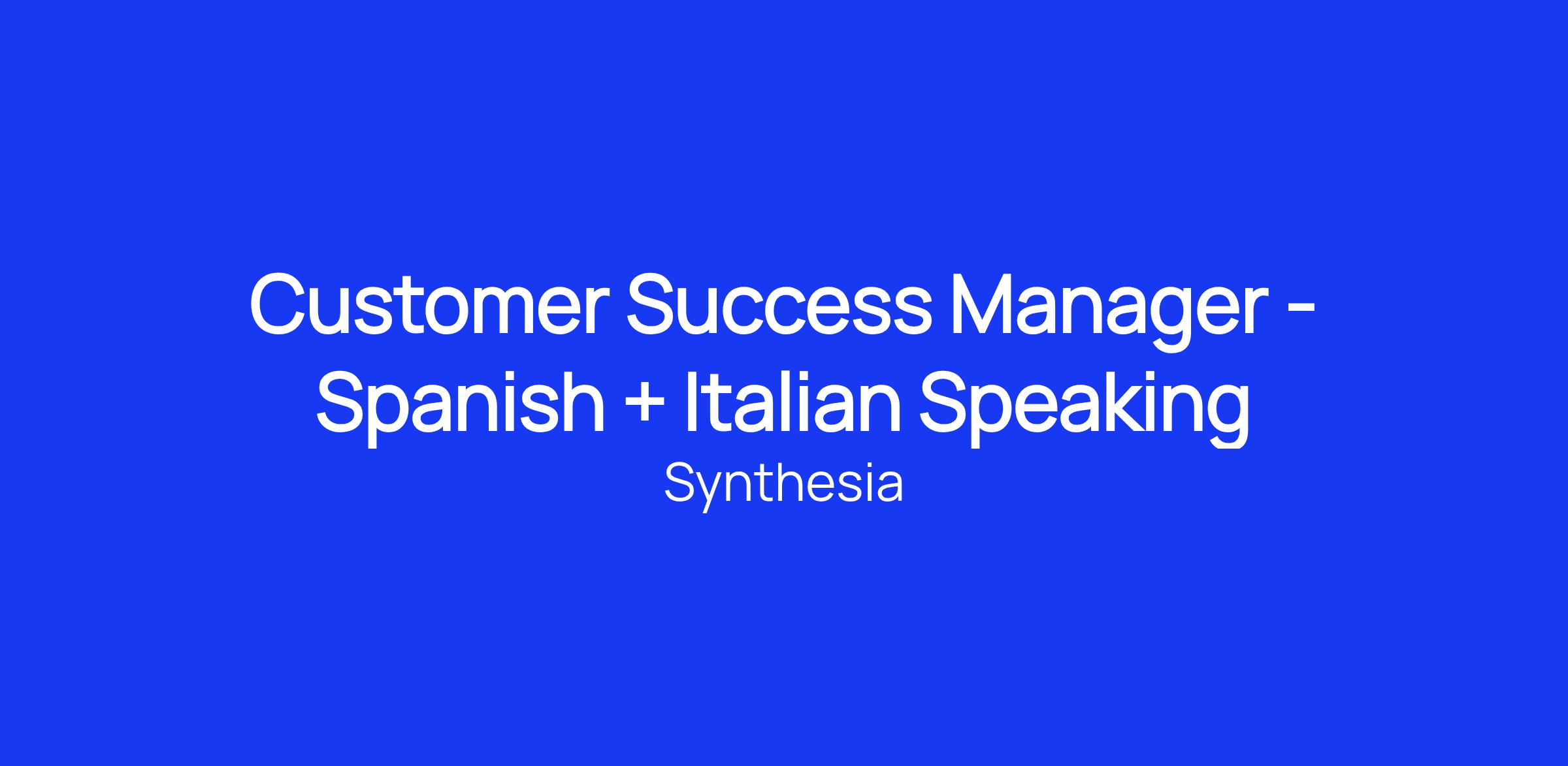 Reporting to the Senior Director of Customer Success and focusing on both Spanish and Italian accounts in Europe - you are energetic, driven, and care deeply about the success of our customers