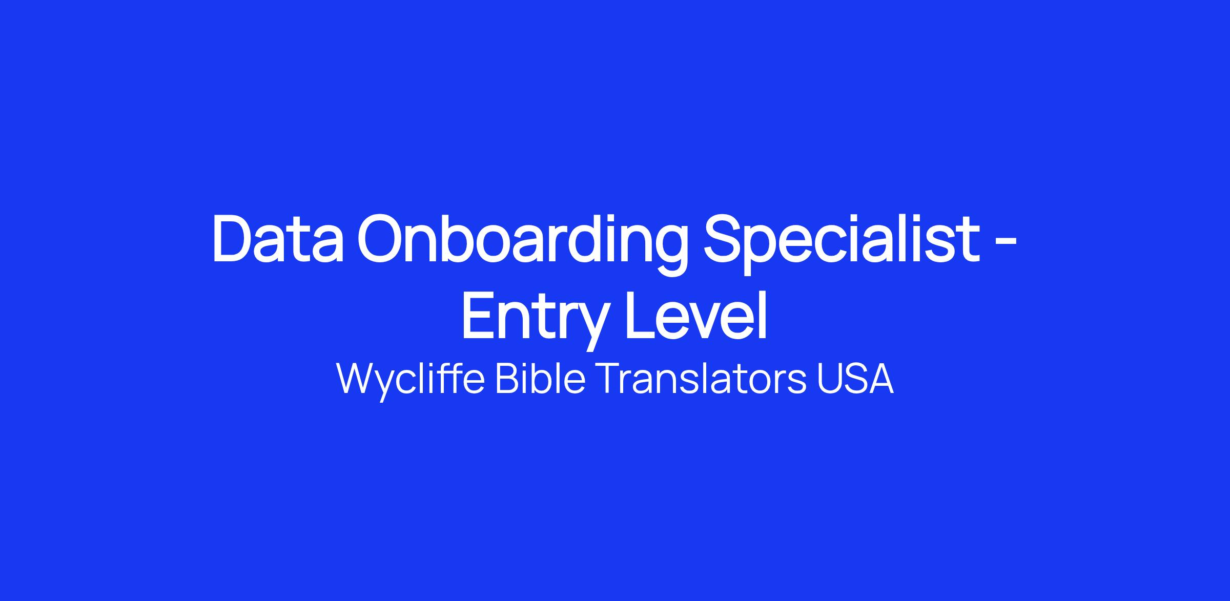 Looking for full-time OR part-time staff, member OR volunteer. ProgressBible team members love Jesus and are passionate about seeing Godโs word translated into every language. Our Data Onboarding Specialists are excellent communicators who are data nerds at heart. Data Onboarding Specialists can understand and communicate data with various stakeholders while also functioning as a data generalist in a variety of data roles such as data architect, data engineer, and data analyst.
