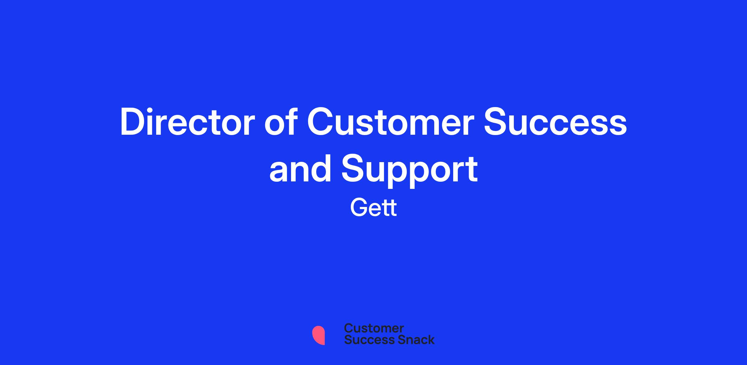 We are looking for a Director of Customer Success & Support to join our UK Commercial Team. The successful candidate will play a pivotal role in defining and executing the strategy for customer success, support, and revenue retention & growth, ensuring our customers receive exceptional service and maximise the value of the Gett platform. The successful candidate will lead a team of 12 with 5 direct reports. The primary focus will be on customer retention, driving incremental revenue growth, increasing user adoption and ensuring the long-term satisfaction of our valued B2B customer segment. This role will report to the VP of UK B2B.