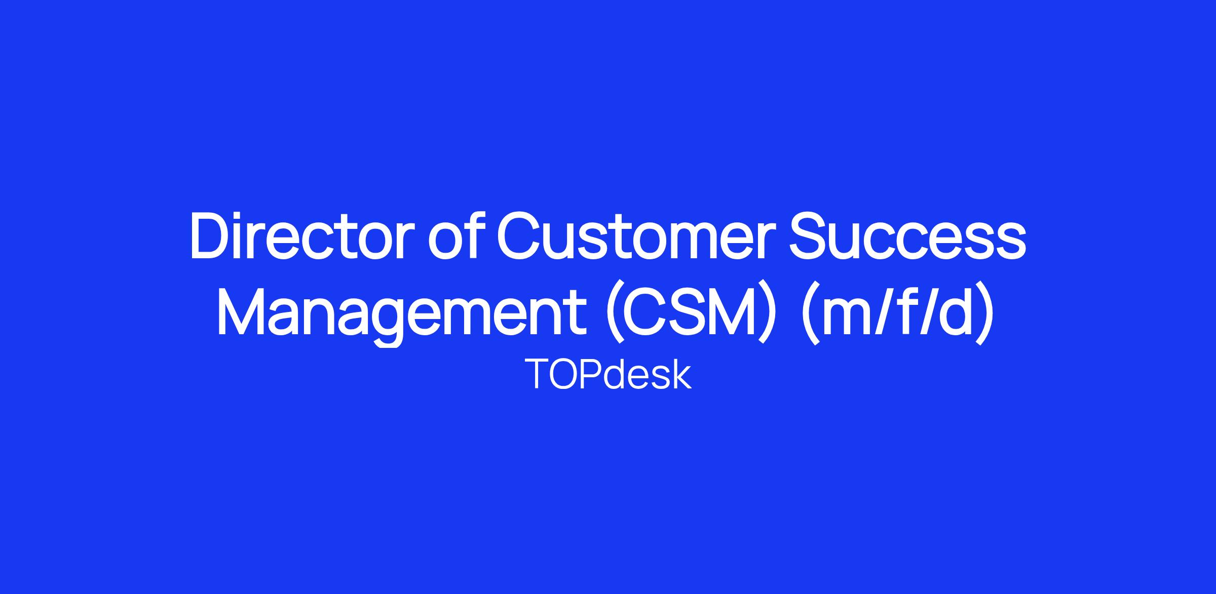 At TOPdesk, our mission is to ensure customers achieve value from our offering, leading to long-term retention, satisfaction, and sustainable growth. To strengthen this mission, we are looking for a Director of Customer Success Management (CSM) to lead the successful rollout and expansion of our CSM function.