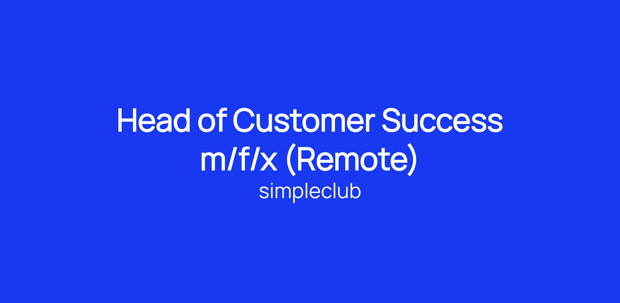 Seit Herbst 2022 arbeiten wir engagiert am Ausbau unseres B2B-Geschäfts und erleben ein erstaunliches Wachstum! Als Head of Customer Success in unserem dynamischen Team übernimmst du eine zentrale Rolle: Du sorgst dafür, dass unsere Kunden nicht nur zufrieden, sondern begeistert sind, und hebst Kundenbindung und -wachstum auf ein völlig neues Level. Du berichtest direkt an einen Co-Founder / VP of Sales, arbeitest eng mit verschiedenen Abteilungen zusammen und führst ein leistungsstarkes Team. Deine richtungsweisenden Entscheidungen und Strategien prägen maßgeblich den Erfolg und die Zukunft von simpleclub. Wenn du bereit bist, dich einer spannenden Herausforderung zu stellen und Teil eines engagierten Teams zu werden, dann bewirb dich jetzt und sei Teil unseres Erfolgs!
