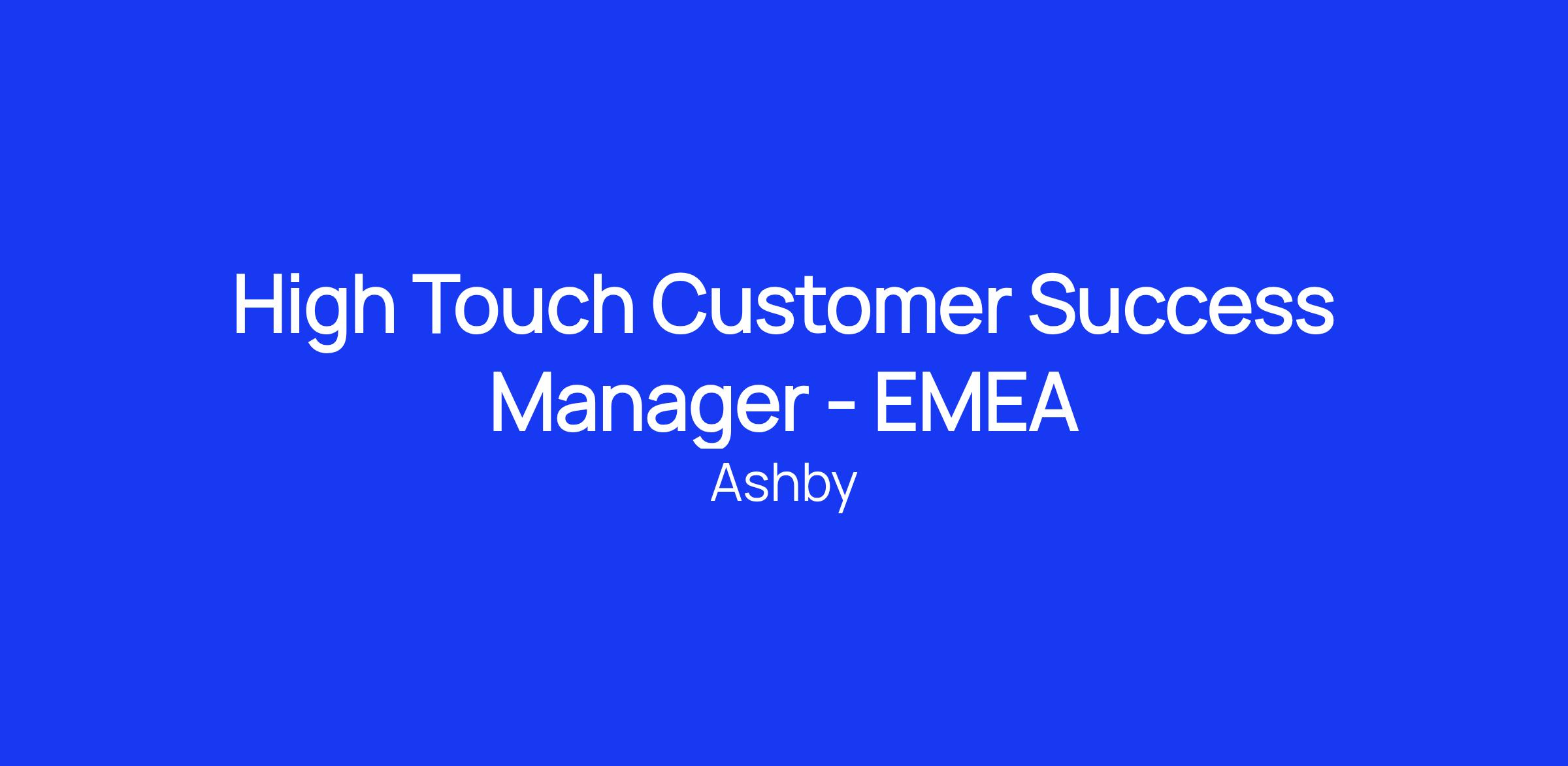 As a member of our Customer Success team, you will help us continue to grow our High Touch Customer Success function. In this role, you'll implement, train, and support the adoption of Ashby with customers across the region, partnering closely with a talented group of four CSMs on the EMEA High Touch team.