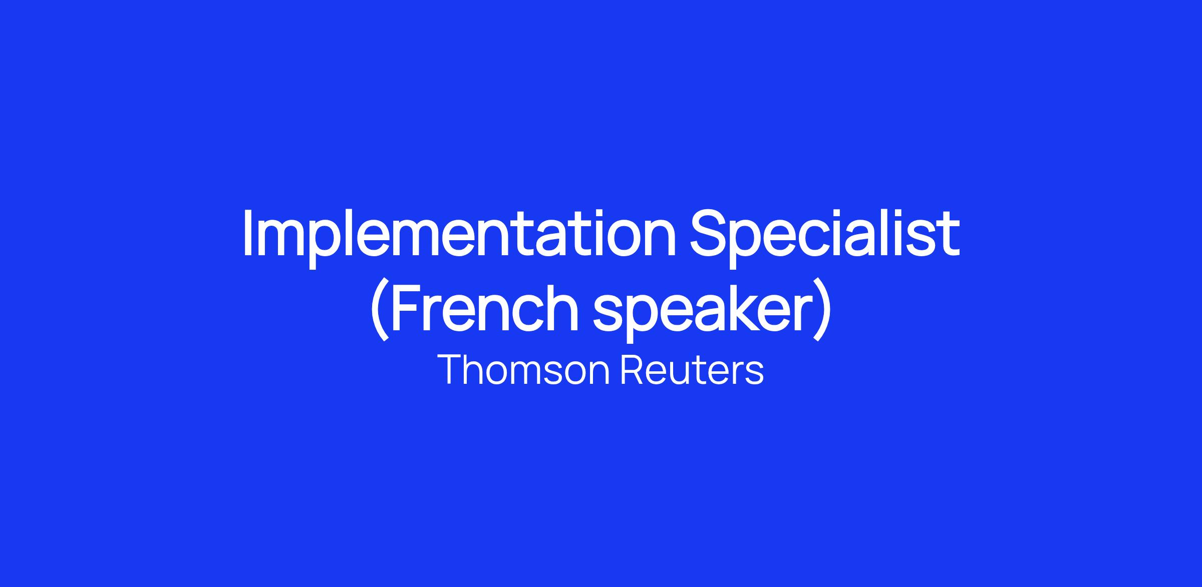As an Implementation Specialist with Thomson Reuters, you will:
