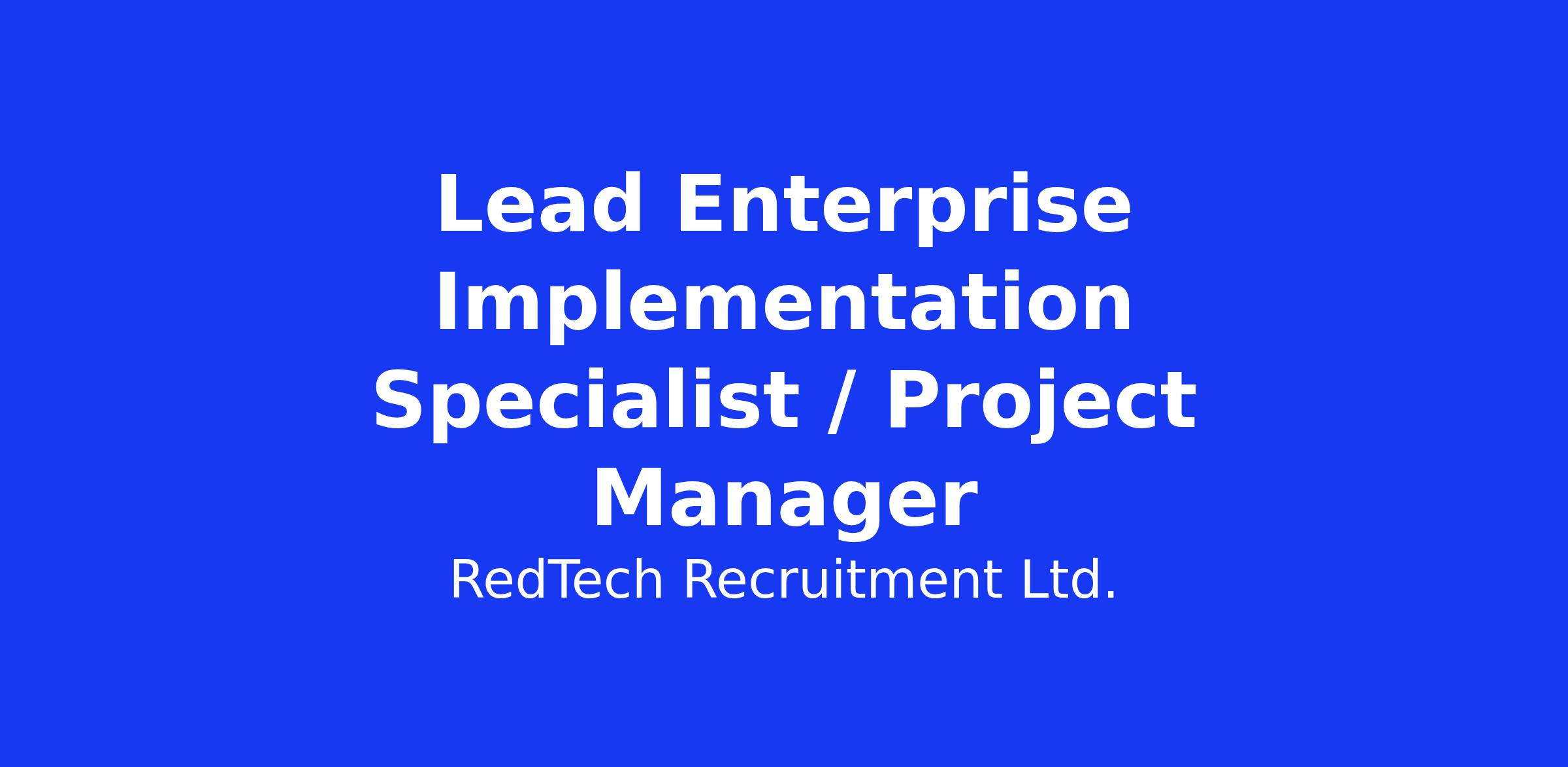 Lead Enterprise Implementation Specialist / Project Manager An exciting opportunity for a Senior or Lead Enterprise Implementation Specialist to join a market-leading, disruptive AI software company, delivering complex SaaS implementations to global enterprise customers.