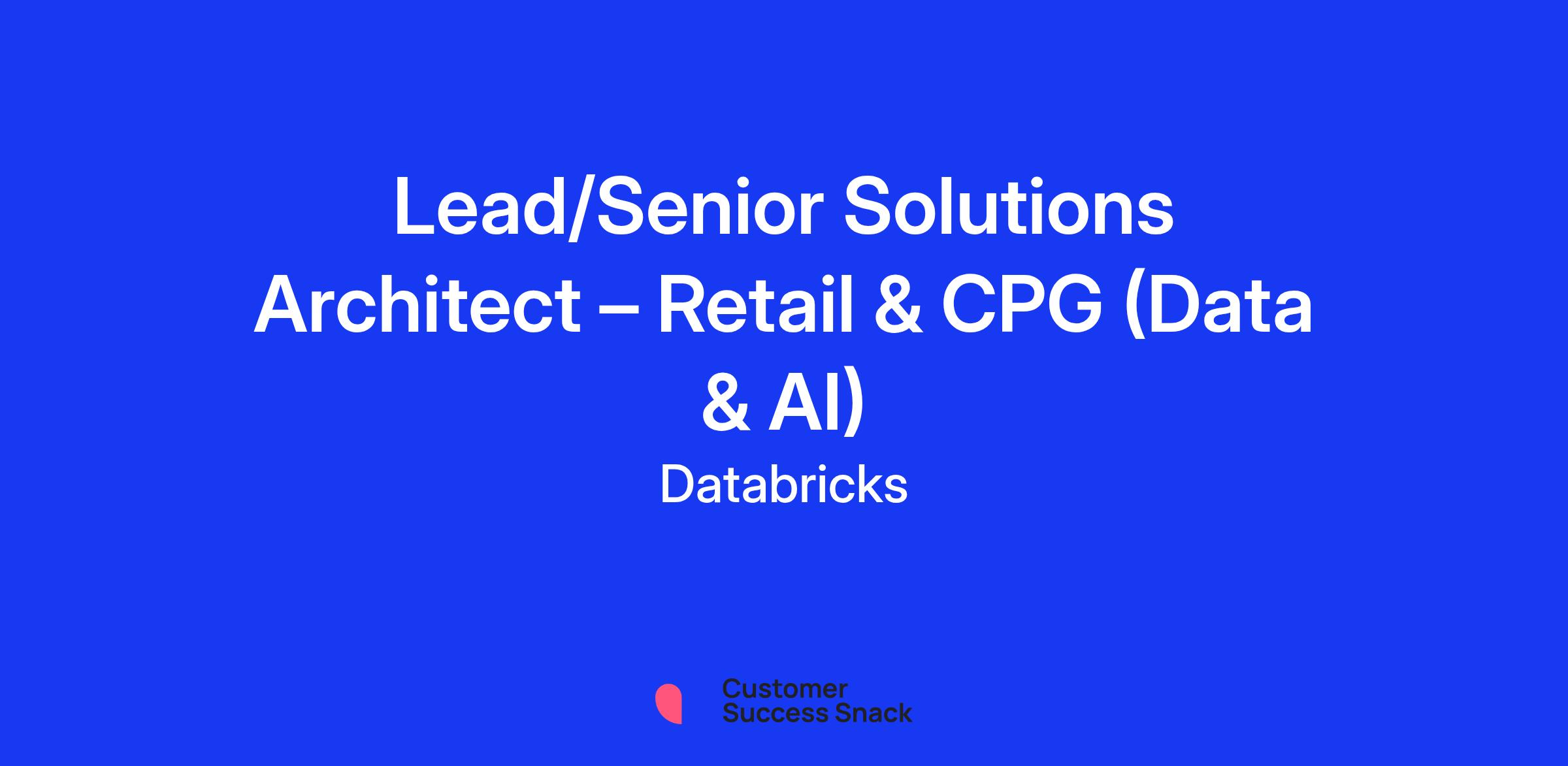 From personalised shopping experiences to sustainable supply chains, data is the engine driving the Retail and Consumer Packaged Goods (CPG) industries forward. At Databricks, we are looking for a strategic technical leader to help the world's biggest brands turn their data into intelligence.