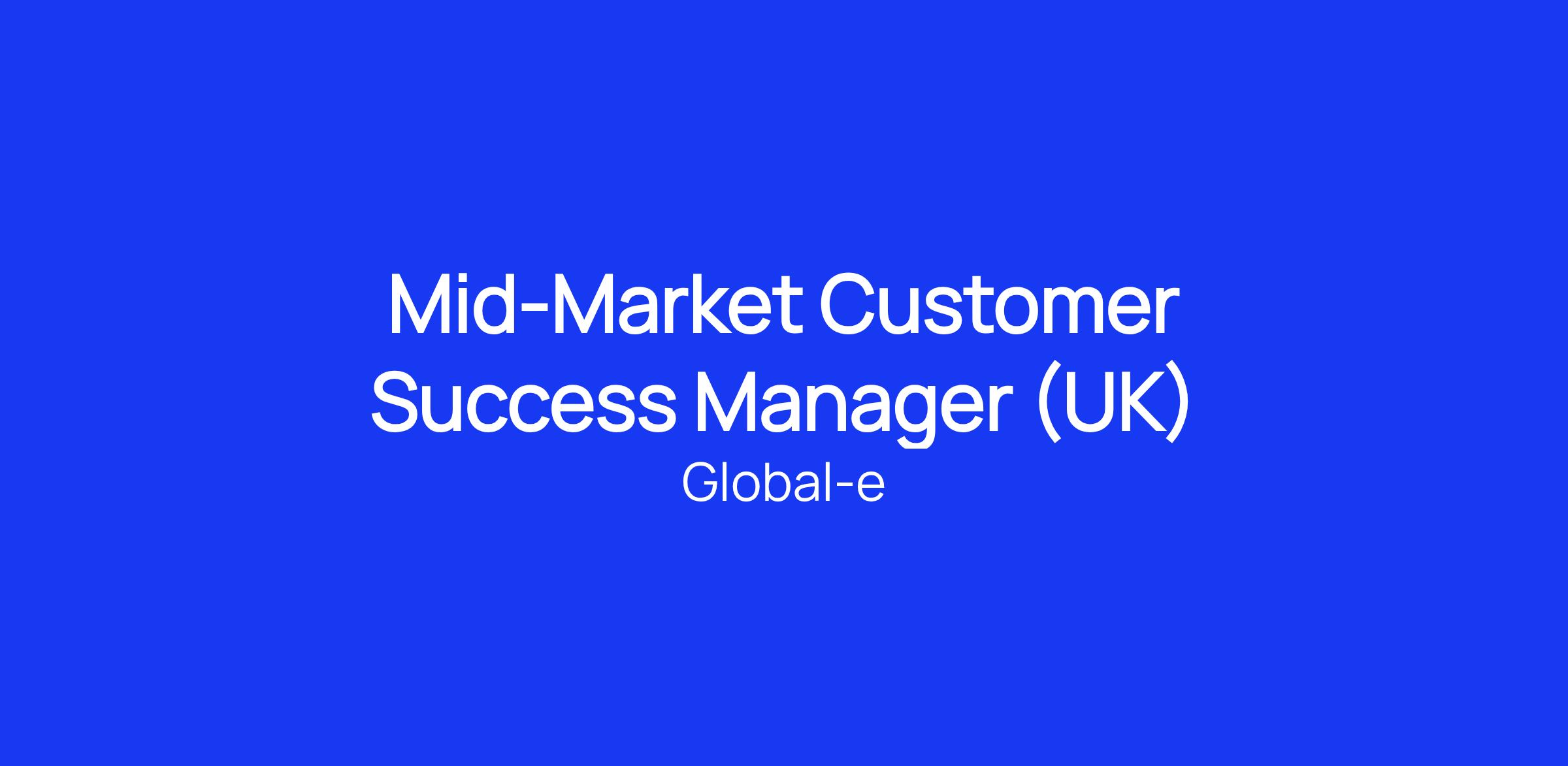 We are looking for an Mid-Market Customer Success Manager who will partner with Global-e and ensure the long-term success of our clients in the UK.