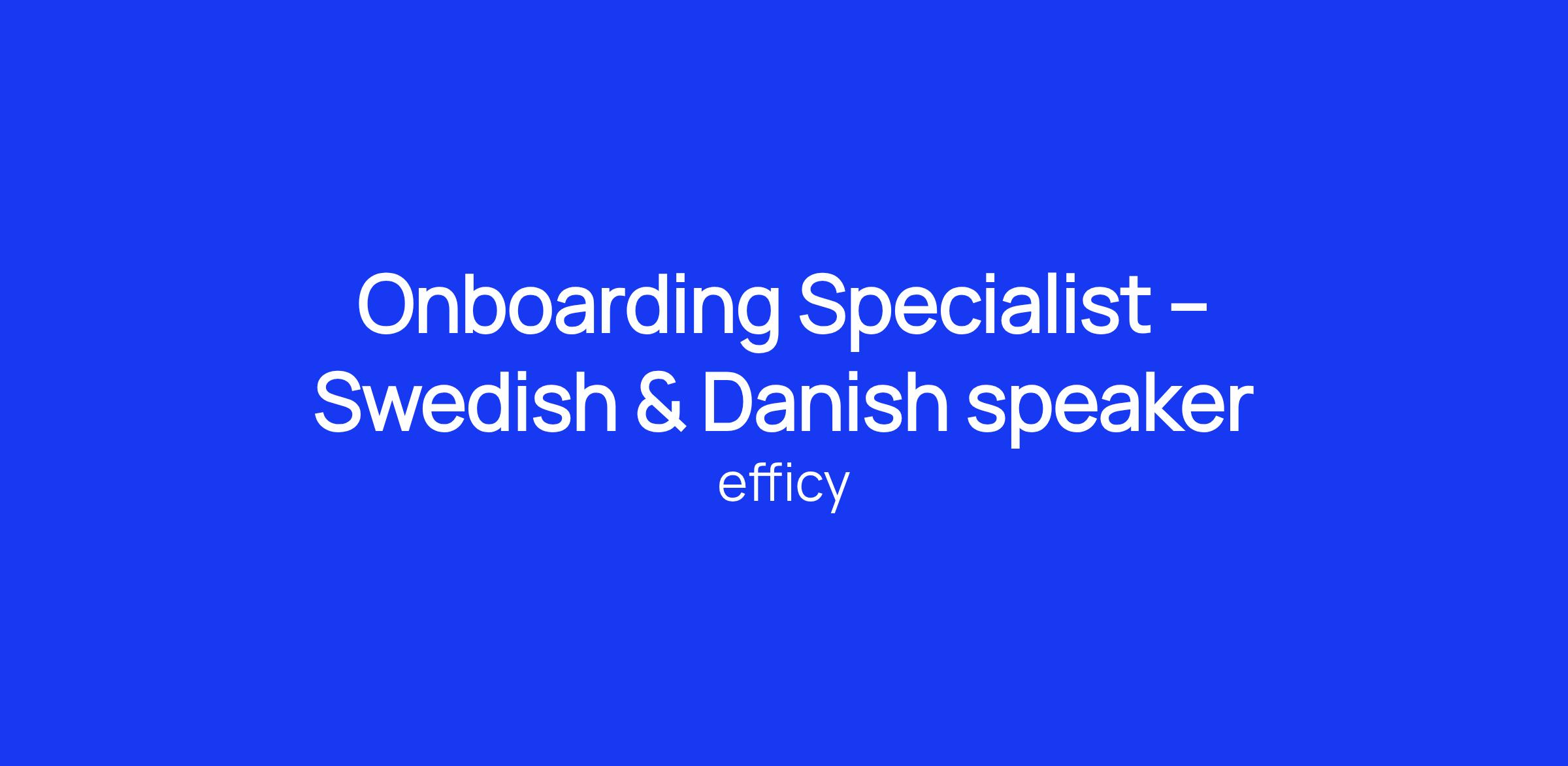 💻 Onboarding Specialist – Swedish & Danish speaker