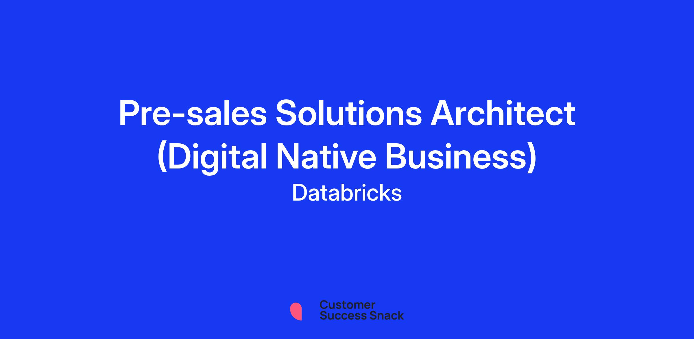 At Databricks, our core values are at the heart of everything we do; creating a culture of proactiveness and a customer-centric mindset guides us to create a unified platform that makes data science and analytics accessible to everyone. We aim to inspire our customers to make informed decisions that push their business forward. We provide a user-friendly and intuitive platform that makes it easy to turn insights into action and fosters a culture of creativity, experimentation, and continuous improvement. You will be an essential part of this mission, using your technical expertise to demonstrate how our Databricks Data Intelligence Platform can help customers solve their complex data challenges. You'll work with a collaborative, customer-focused team that values innovation and creativity, using your skills to create customised solutions to help our customers achieve their goals and guide their businesses forward. Join us in our quest to change how people work with data and make a better world!