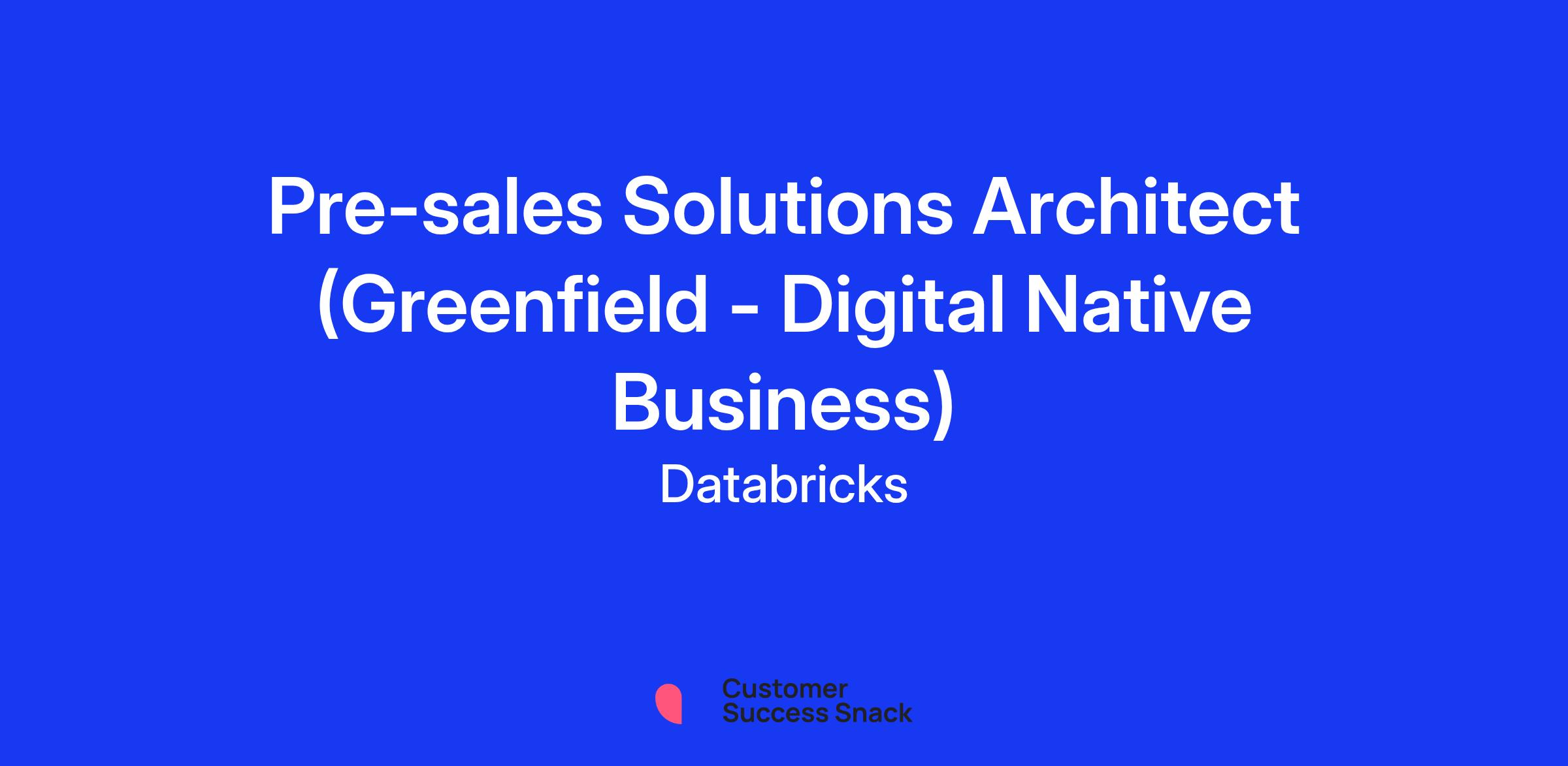 At Databricks, our core values are at the heart of everything we do; creating a culture of proactiveness and a customer-centric mindset guides us to create a unified platform that makes data science and analytics accessible to everyone. We aim to inspire our customers to make informed decisions that push their business forward. We provide a user-friendly and intuitive platform that makes it easy to turn insights into action and fosters a culture of creativity, experimentation, and continuous improvement. You will be an essential part of this mission, using your technical expertise to demonstrate how our Databricks Data Intelligence Platform can help customers solve their complex data challenges. You'll work with a collaborative, customer-focused team that values innovation and creativity, using your skills to create customised solutions to help our customers achieve their goals and guide their businesses forward. Join us in our quest to change how people work with data and make a better world!