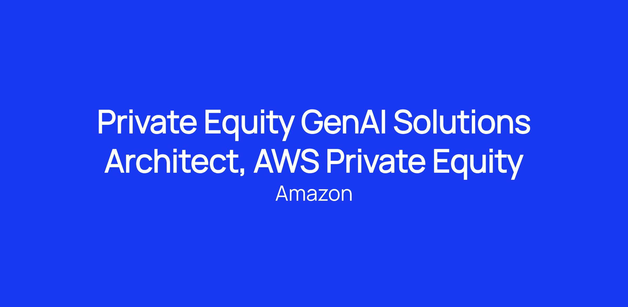 Are you excited about helping the world's largest Private Equity firms harness Generative AI to transform how their portfolio companies build, operate, and scale? We're looking for a GenAI Solutions Architect to join the AWS Private Equity team, a small, high-impact group that works directly with PE firms and their portfolios to accelerate AI adoption and drive measurable business outcomes.