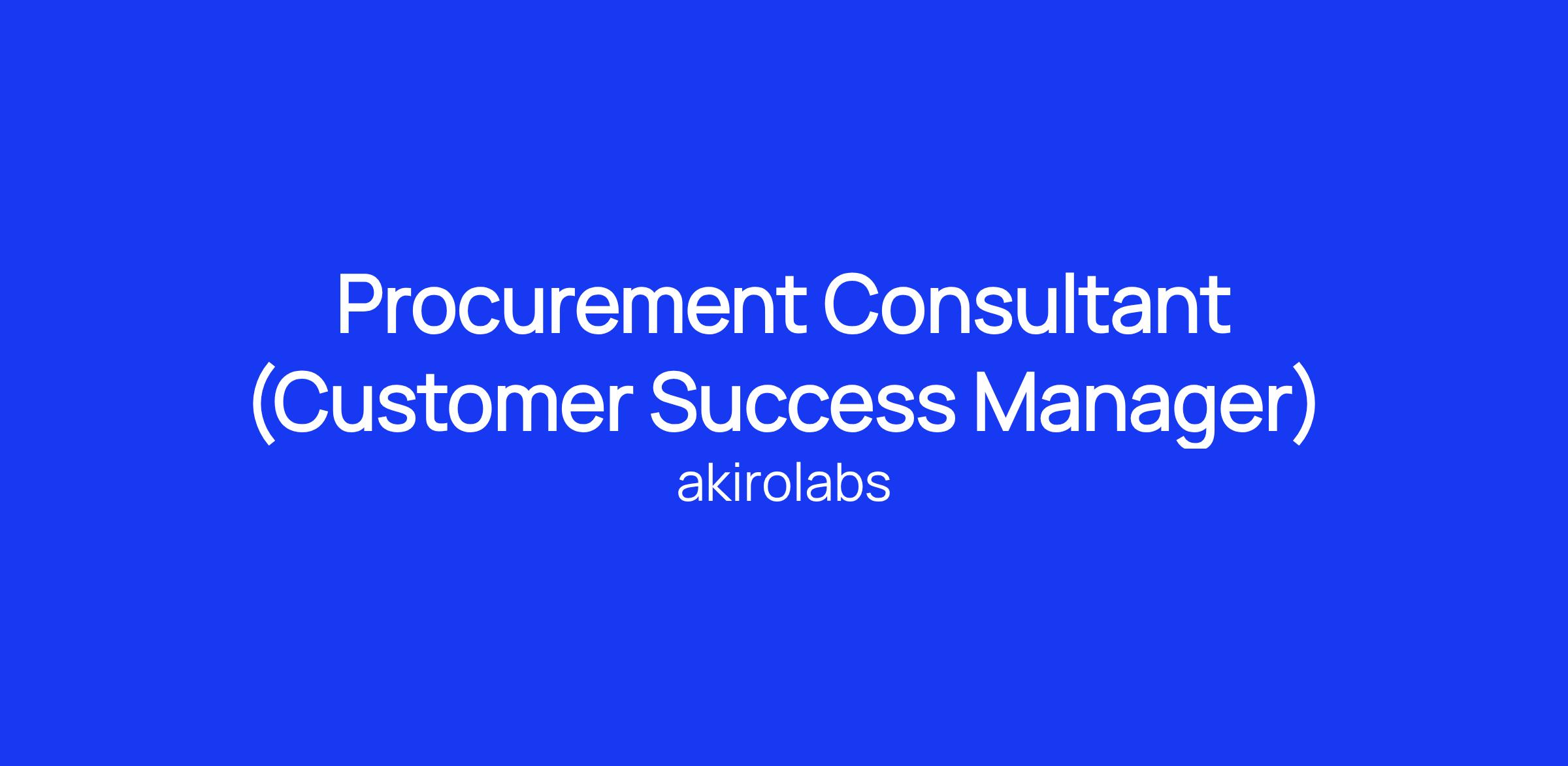 As a Customer Success Manager ( Procurement Consultant ) , you’ll play a critical role in ensuring that our customers are successful and getting value out of the akirolabs platform.