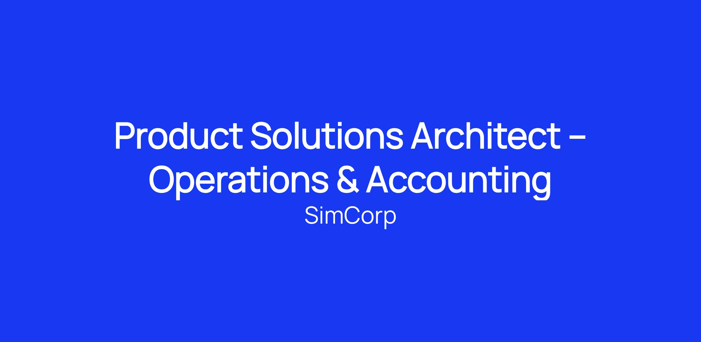 The Product Solutions Architect for Operations & Accounting is a senior role responsible for defining what good looks like across SimCorp’s middle‑ and back‑office domains and translating deep operational and accounting expertise into repeatable, scalable SimCorp One client implementations.