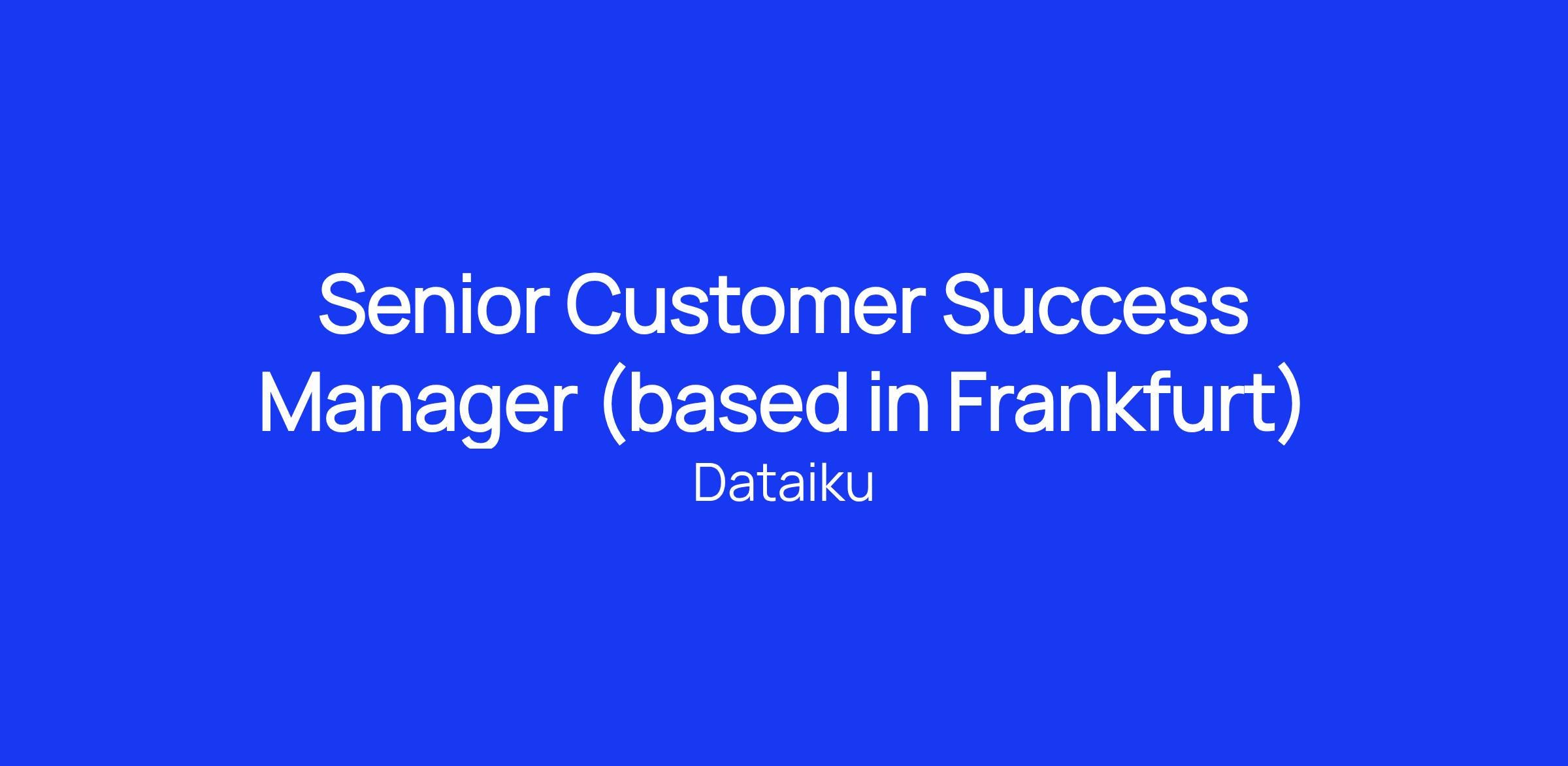 We are looking for a Senior Customer Success Manager to join us in Frankfurt, Germany, as part of an exciting new team. The Dataiku Senior Customer Success Manager is responsible for serving a portfolio of large enterprise accounts for their assigned territory. This position proactively works with a broad set of stakeholders to illustrate the value delivered through Dataiku’s software & services. The Senior Customer Success Manager serves as the internal voice of the customer while working with other Dataiku teams and partners to exceed customer expectations. This individual's performance is based on specific metrics associated with customer product adoption, expansion & retention.