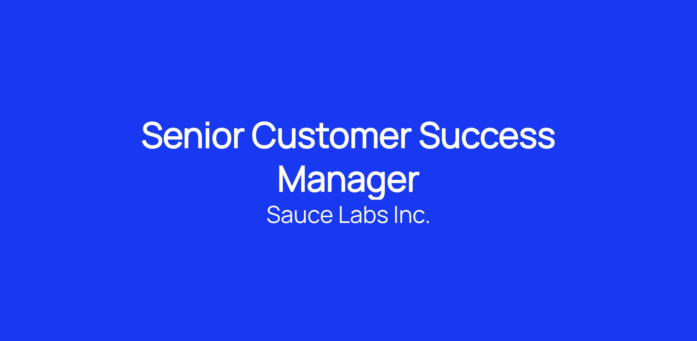 Sauce Labs is ramping up our Customer Success team to proactively help our customers leverage our platform to impact their business. This is an opportunity to be part of a high performing CS team and make a strategic contribution to the success of Sauce Labs. You will be building relationships with key customers and guiding them on their Test Automation journey. We're looking for someone who is passionate about making their customers successful, proactive in solving challenges, and can represent their customers’ needs within the business.