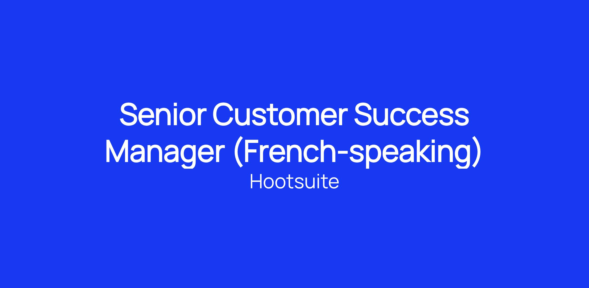 We’re looking for a Senior Customer Success Manager (French-speaking) to support high-value customers in the assigned vertical by providing the tools and resources to achieve their business goals on social media. In this role, you’ll build, cultivate, and maintain influential relationships with your customers by leveraging your customer success experience and demonstrating expert-level competency in Hootsuite’s product, industry trends and best practices. You will drive business outcomes for your customers while being accountable for best-in-class user adoption, revenue retention and growth, and customer advocacy, guiding customers through their journey of social maturity. You will consistently and proactively review, refine and re-validate plans to ensure the customer gains full value from the product suite, the partnership, Hootsuite and social media as a channel. Based in London, United Kingdom or Paris, France, you will report to the Senior Manager, Customer Success.