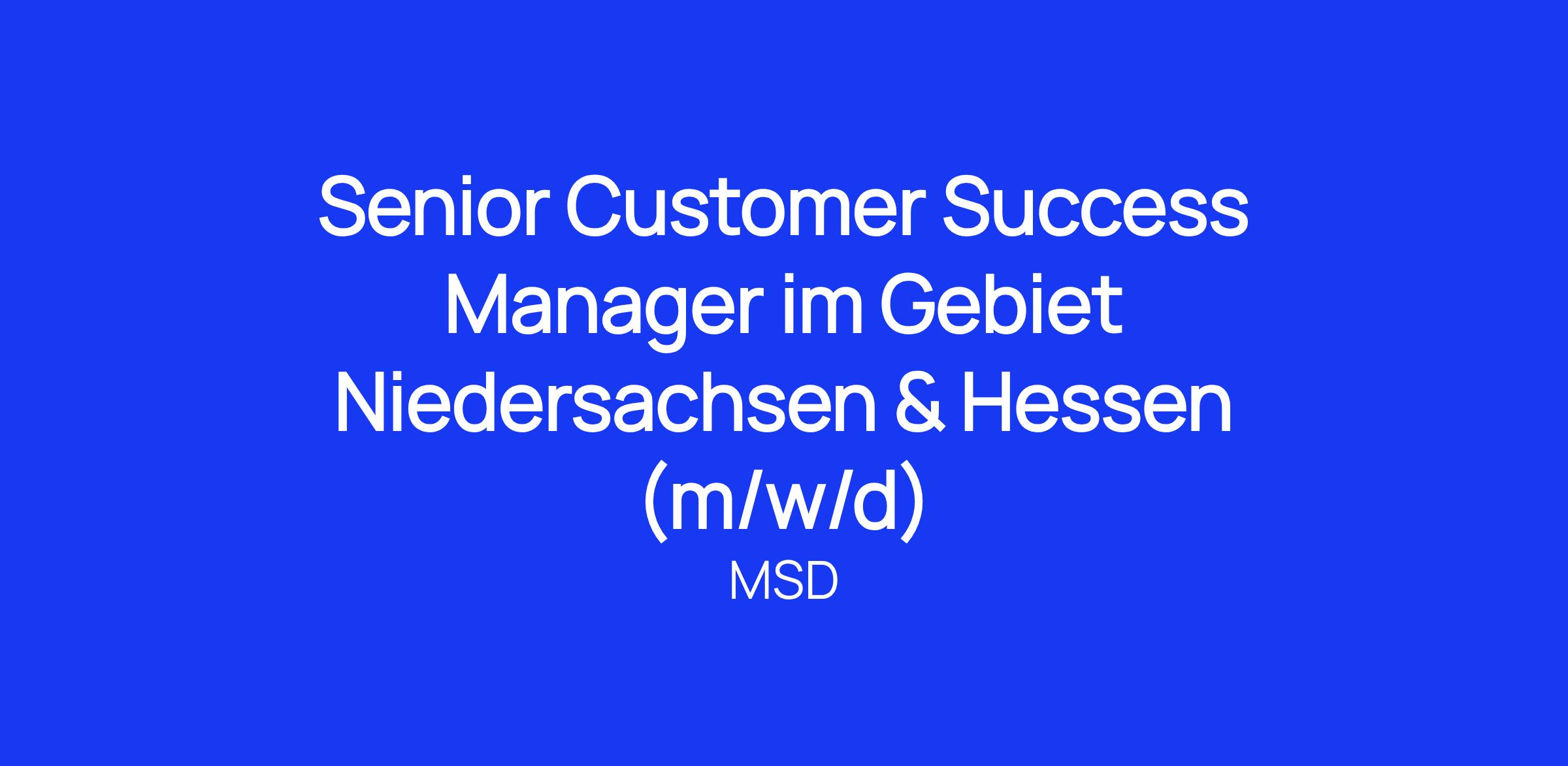 Wir suchen ab sofort in Vollzeit und zunächst befristet bis 01.05.2028 eine/n Customer Success Manager (m/w/d) für das Gebiet Niedersachsen & Hessen.