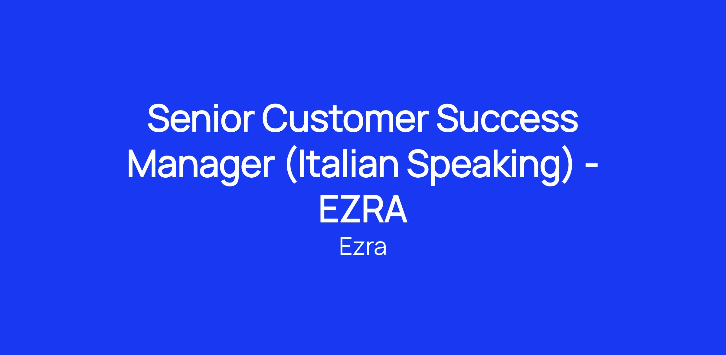 The Role:As EZRA continues to grow, so does our mission to be in front of more organizations worldwide! To accomplish this, we are looking for an Italian speaking Senior Enterprise Customer Success Manager, reporting directly to the regional Enterprise Customer Success Lead.