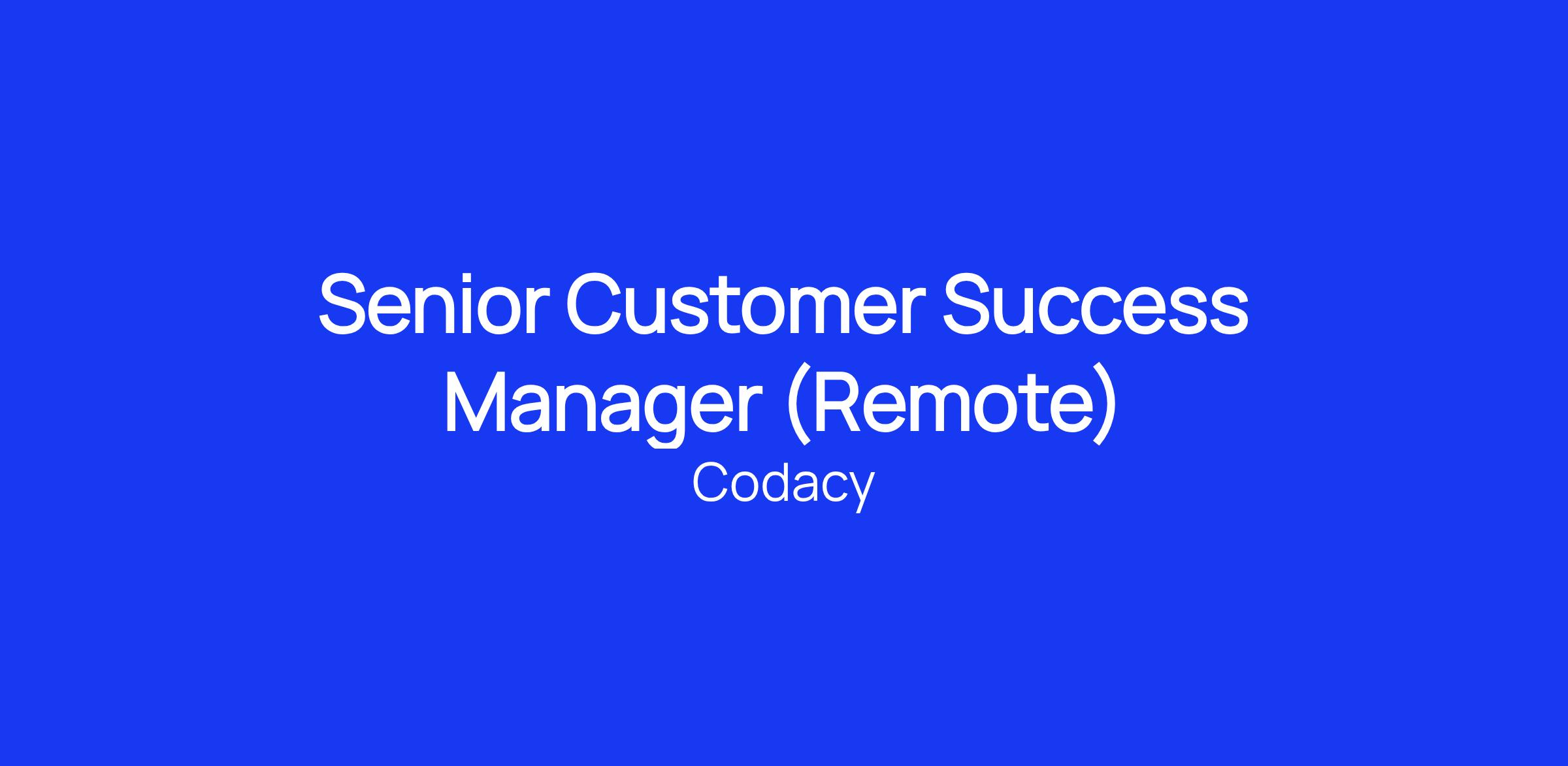 We are seeking a Senior Customer Success Manager who will be responsible for managing relationships with Enterprise and Mid-Market customers, helping engineering teams successfully adopt and scale Codacy across their development workflows. You will work closely with engineering users, engineering managers, and platform leaders to drive product adoption, improve code quality practices, and ensure customers achieve measurable value. Acting as a trusted partner to technical stakeholders, you’ll guide customers through onboarding, expansion opportunities, and long-term success with Codacy.