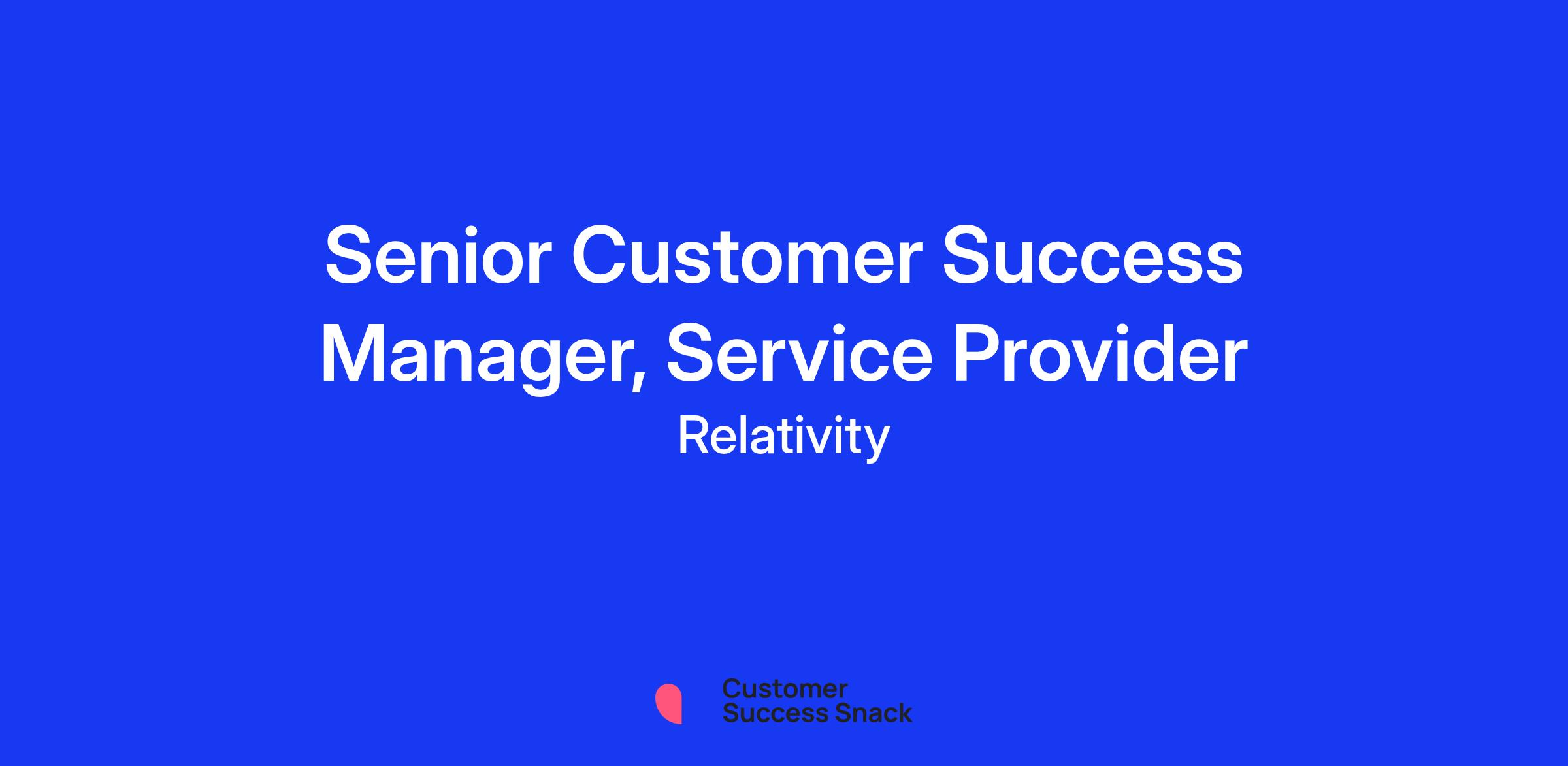 The Service Provider Customer Success Management Team supports our partners in our Premier Success Program in meeting their goals using the Relativity suite of products. The team guides overall value and product adoption based on the customer's individual requirements and segment best practices. The team works with Sales to understand account health and to identify any product or contract retention risks.Job Description and Requirements