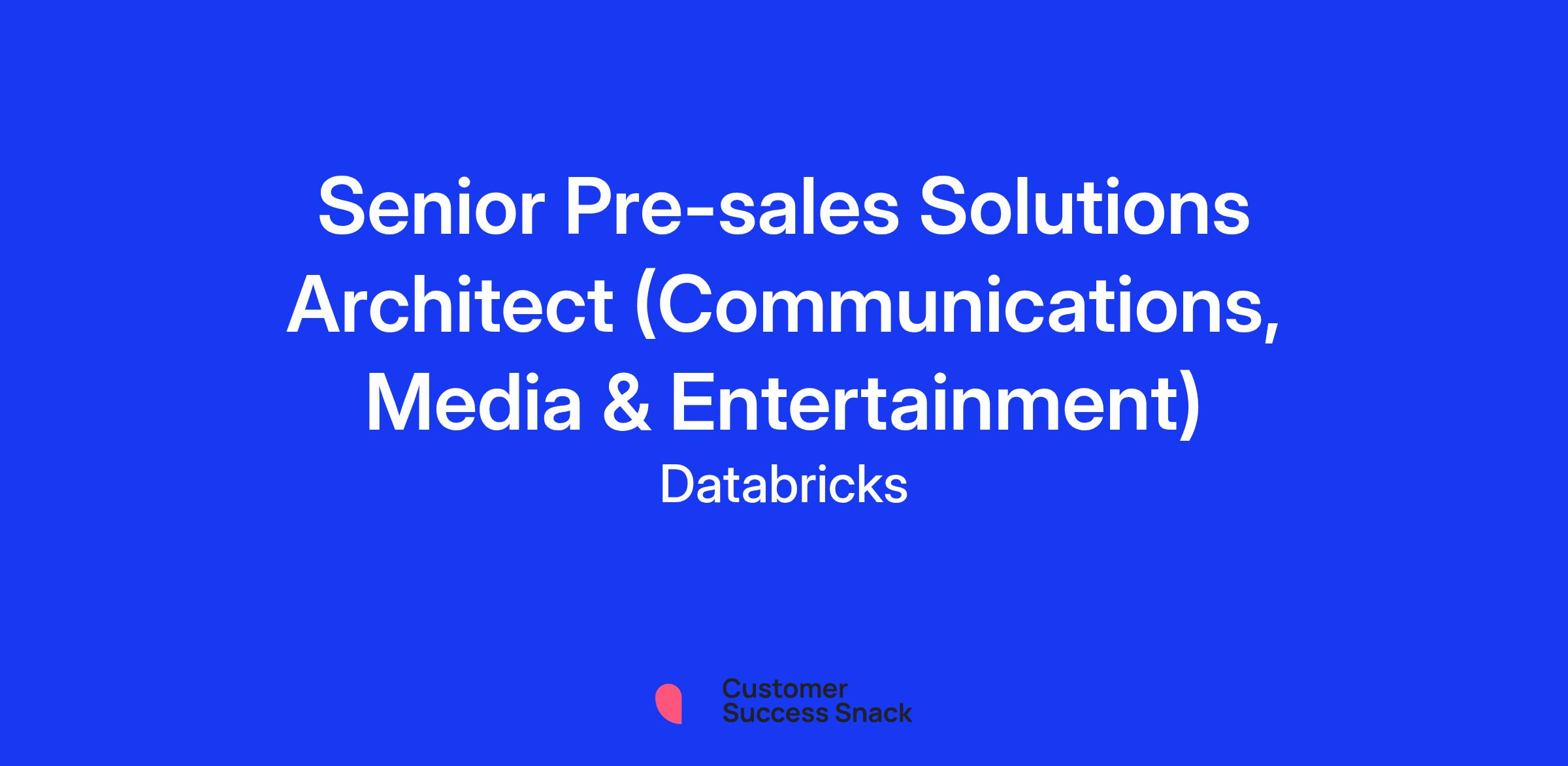 At Databricks, our core values are at the heart of everything we do; creating a culture of proactiveness and a customer-centric mindset guides us to create a unified platform that makes data science and analytics accessible to everyone. We aim to inspire our customers to make informed decisions that push their business forward. We provide a user-friendly and intuitive platform that makes it easy to turn insights into action and fosters a culture of creativity, experimentation, and continuous improvement. You will be an essential part of this mission, using your technical expertise to demonstrate how our Databricks Data Intelligence Platform can help customers solve their complex data challenges. You'll work with a collaborative, customer-focused team that values innovation and creativity, using your skills to create customised solutions to help our customers achieve their goals and guide their businesses forward. Join us in our quest to change how people work with data and make a better world!
