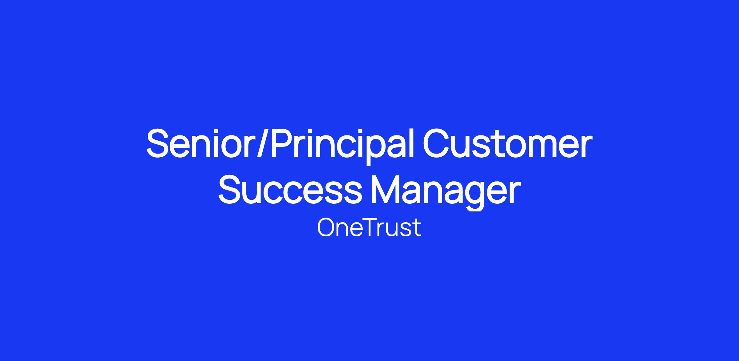 We are looking for a Senior/Principal Customer Success Manager to join our Customer Experience team. In this role, you will act as a trusted advisor for our strategic customers from the start of their journey to renewal in a high-to-medium touch role. As a Senior CSM, you will be assigned to a portfolio of customers and be responsible for the success of those accounts. Your main goal will be to ensure our key customers are happy and satisfied with the products they have purchased. Our Senior CSMs are hyper-focused on delivering revenue retention and growth through alignment, adoption, and world-class customer engagement. You will be responsible for managing the customer relationship, ensuring they are getting full value out the platform, partnering with our Sales, Product, Engineering, and Consulting teams to provide the highest level of support, and working to ensure adoption and growth within your accounts. As the customers you support grow with OneTrust, the scope of work will expand as well as you will be responsible for supporting all live products. You will be on the forefront of evangelizing Trust in the workplace.