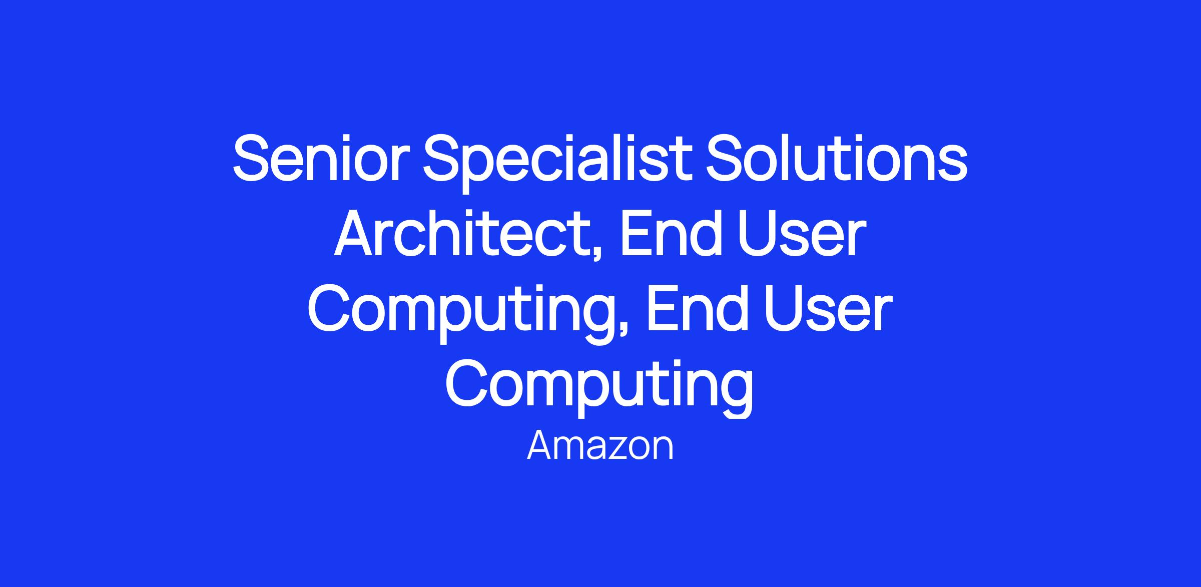 Amazon Web Services is looking for Solutions Architects to help establish AWS Agentic WorkSpaces (formerly known as Amazon End User Computing) as the market leader in end user computing. We built AWS Agentic WorkSpaces services to give customers the agility to respond to the changing needs of their workforce. Customers can scale up or scale down on-demand, providing users with the resources they need, all without deploying and operating infrastructure.