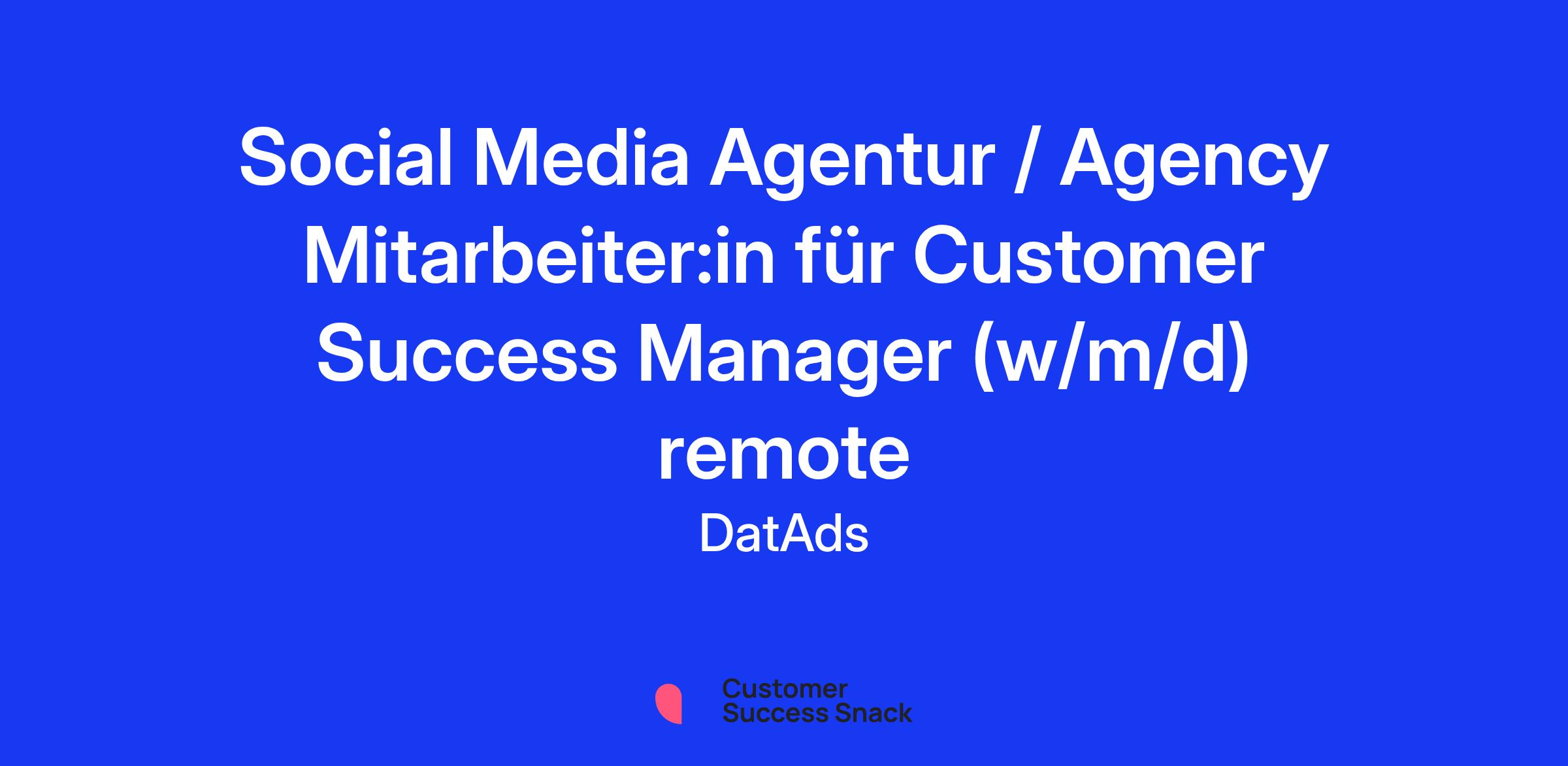 Social Media Agentur / Agency Mitarbeiter:in für Customer Success Manager (w/m/d) remote