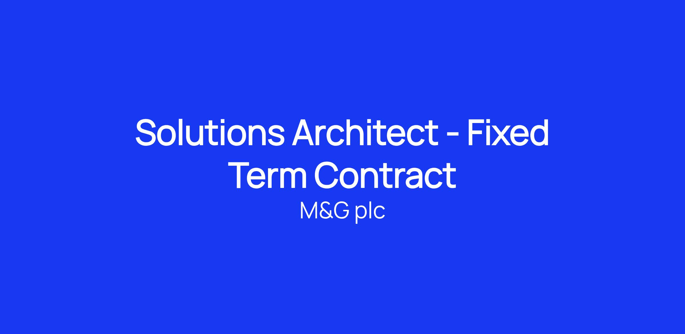 A new opportunity has arisen for a Solution Architect within M&G Enterprise Architecture team. The successful candidate will work principally on the Advice transformation programme, ensuring that our IT Architecture principles and standards are applied effectively and efficiently across a number of exciting, customer-focused change projects.