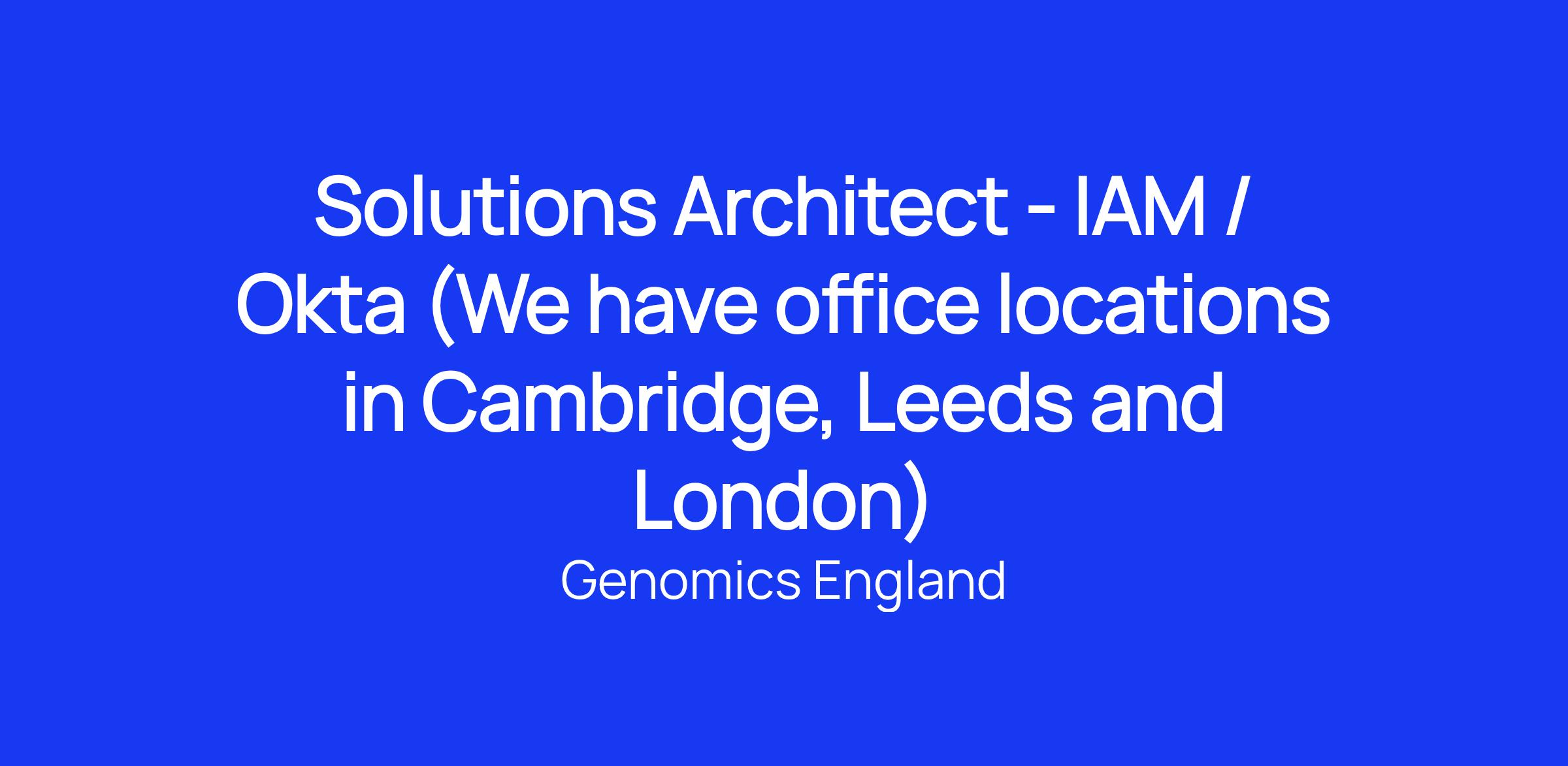 Genomics England is looking for a highly skilled Identity and Access Management (IAM) Solution Architect with deep, hands-on expertise in Okta, and a strong knowledge of other related tools such as AWS Identity Centre, NHS CIS2, Azure AD etc.