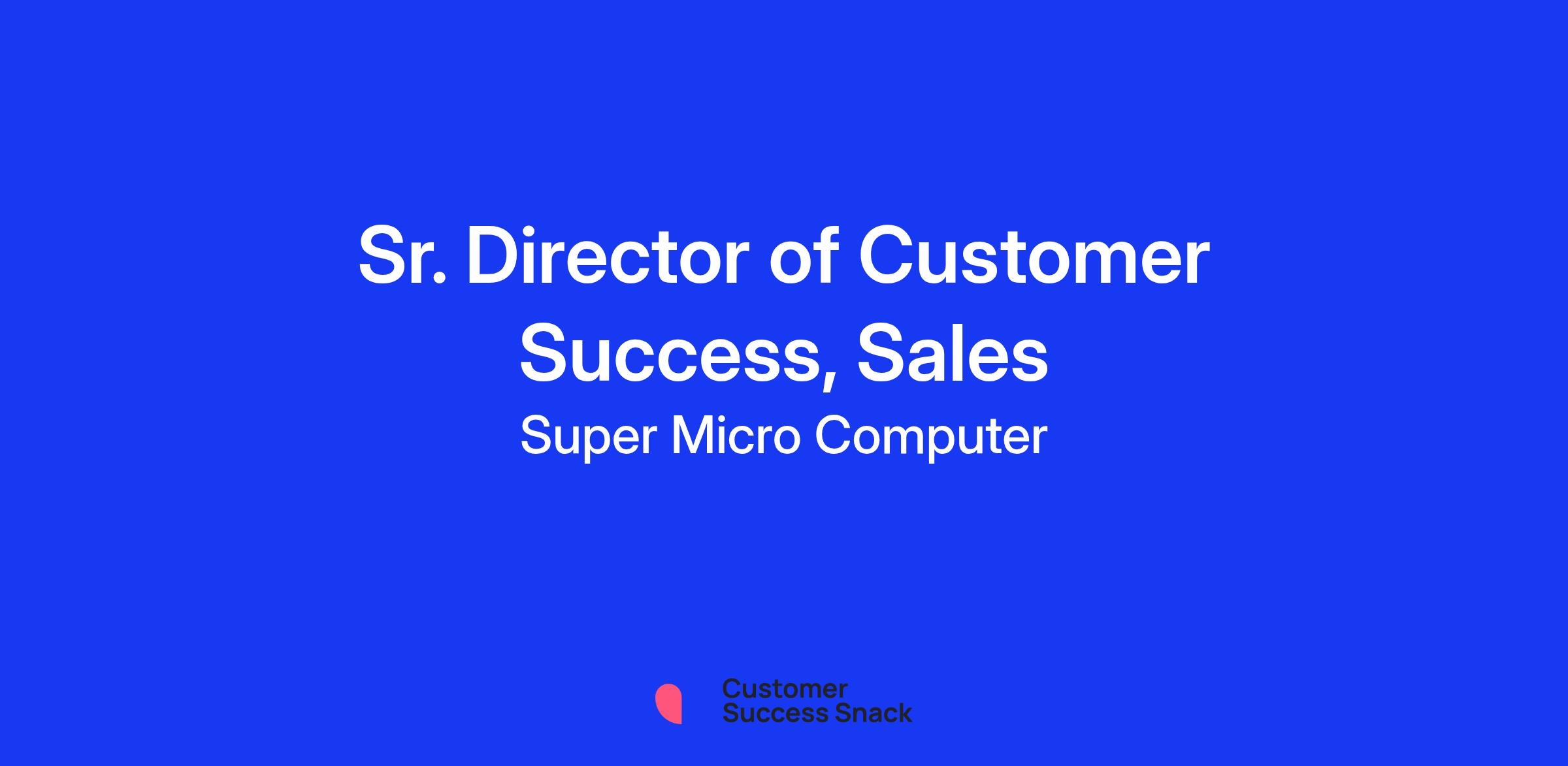 The Sr. Director of Customer Success within Sales organization is responsible for driving new sales and assisting with market strategies of Supermicro. This includes building plans and programs that will drive business in new markets and new customer segments that leverage our channels and existing and emerging strategic partnerships. This individual must have strong sales hunter, sales discipline, and sales leadership experience. Domain experience in AI and server hardware and innovations. This individual must be very strong at working cross-functionally at all levels of the organization.