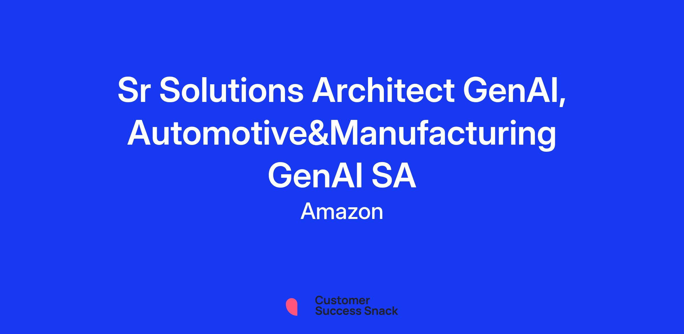 The Automotive & Manufacturing Generative AI Solution Architecture team is dedicated to accelerating generative AI adoption across strategic automotive and manufacturing accounts. Our mission is to drive tangible business value through focused execution on strategic generative AI projects, while enabling scale by up-skilling broader field teams. We work at the intersection of AI technology and industry-specific transformation, partnering closely with account teams, technology specialists, and industry specialist teams to deliver comprehensive solutions.