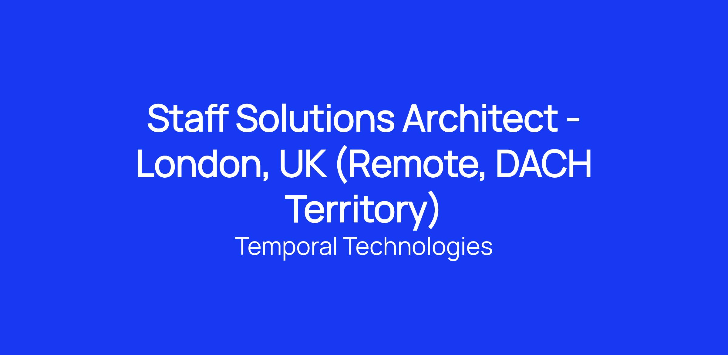 We are hiring a Staff Solutions Architect (Remote, based in London, United Kingdom) to own and grow the DACH territory. This role partners closely with sales, product, and engineering to help prospective and existing customers design, validate, and scale mission-critical systems on Temporal.