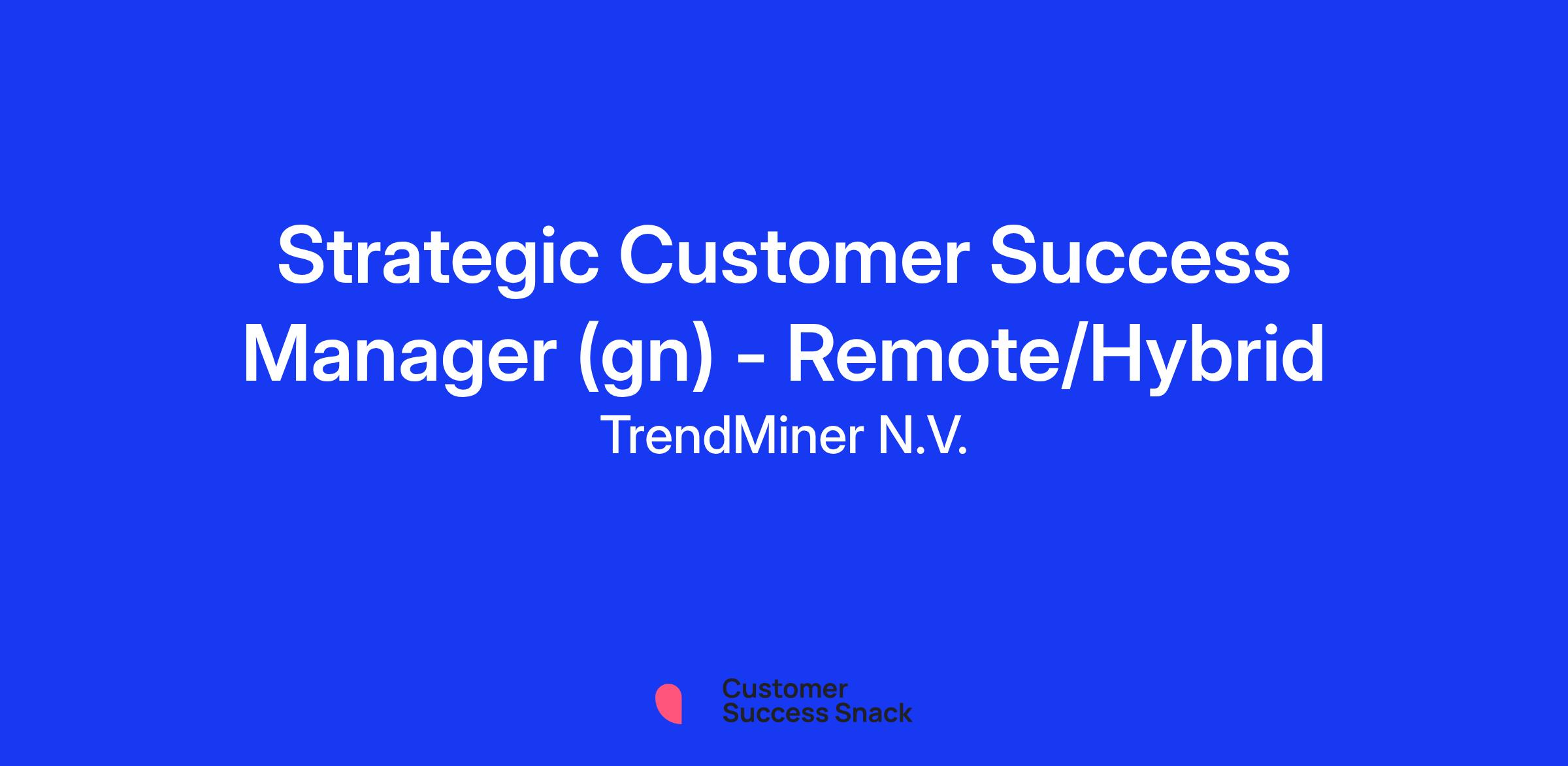 As a TrendMiner Strategic Customer Success Manager (SCSM you are responsible for the adoption and retention of a specific portfolio of accounts in different verticals. You interact and build relationships with customers to ensure they are plugged into all resources TrendMiner has to offer, such as customer training, on-site support services, sharing new release information, user support, all to ensure the customer is successfully generating business value using the TrendMiner platform.