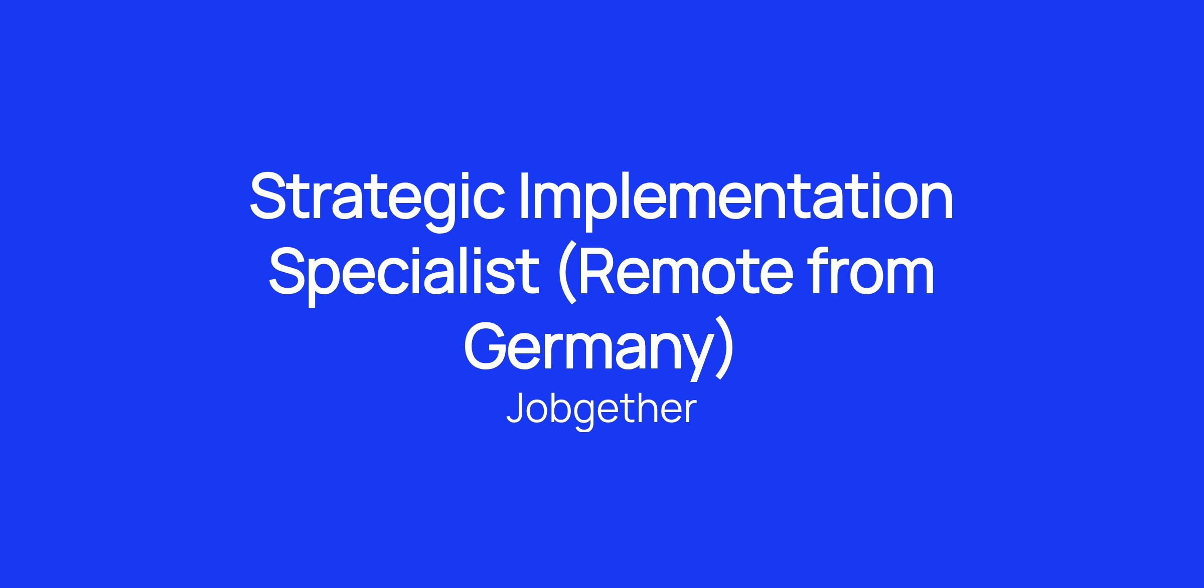This position is posted by Jobgether on behalf of a partner company. We are currently looking for a Strategic Implementation Specialist in Germany.