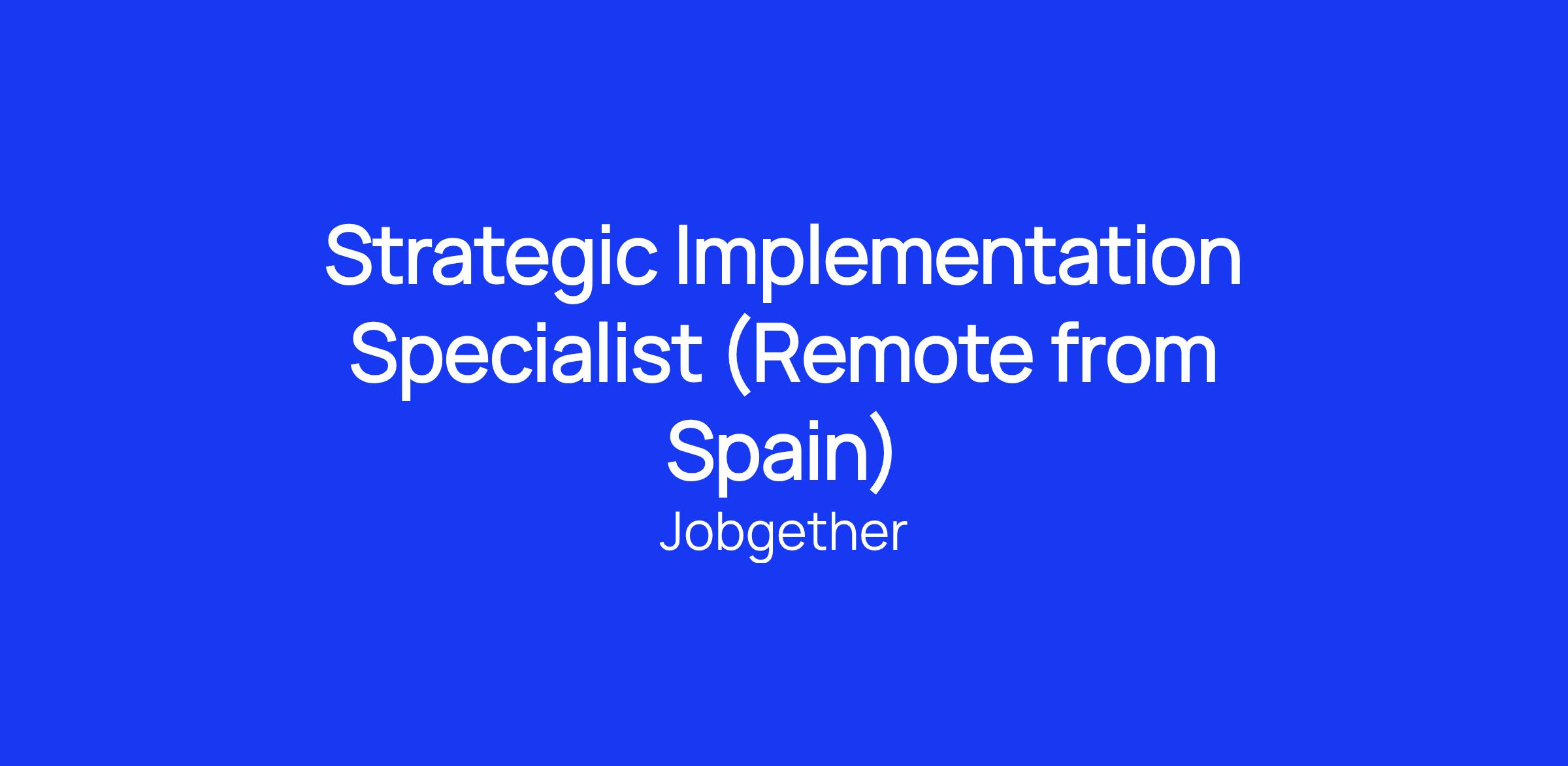 This position is posted by Jobgether on behalf of a partner company. We are currently looking for a Strategic Implementation Specialist in Spain.