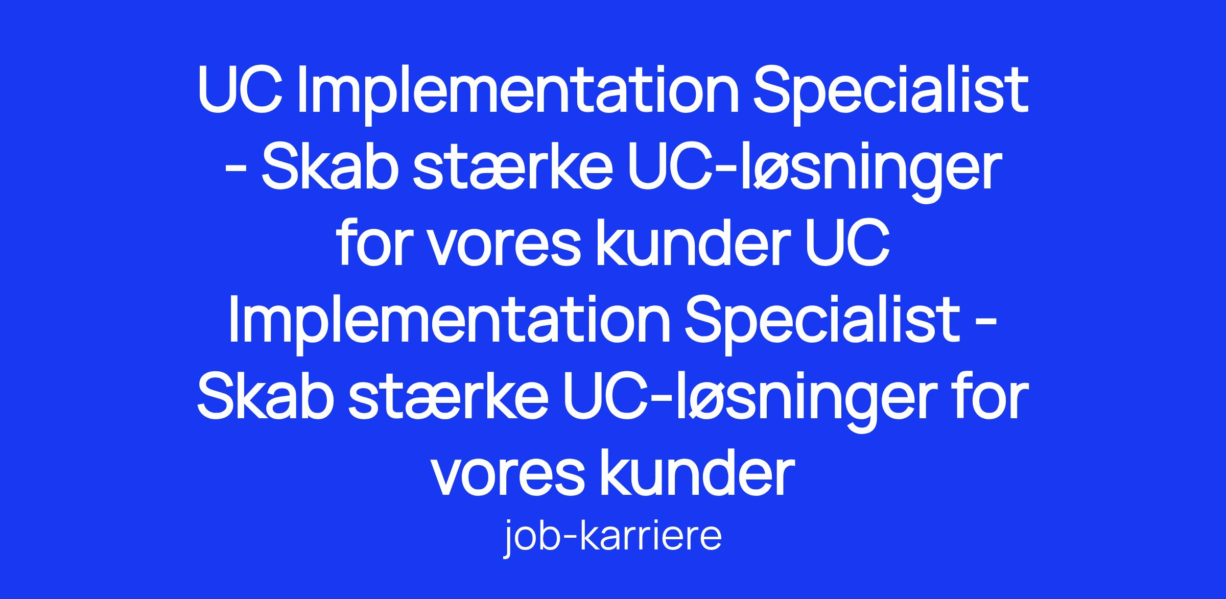 Som UC Implementation Specialist får du ansvar for at designe, konfigurere og levere UC-løsninger i samarbejde med kunder og interne teams. Du bliver eksperten, der sikrer, at løsningen matcher kundens forretningsbehov og rådgiver både før, under og efter implementeringen.